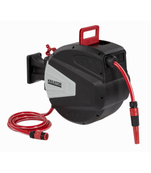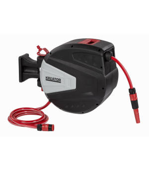 Pokiaľ chcete zalievať celú záhradu bez objemnej záhradnej hadice, ktorá vám neustále prekáža, tento navijak a záhradná hadica KRTGR6711 Kreator je záhradným náradím pre vás. Čo môžete s týmto hadicovým navijakom robiť? Tento hadicový navijak je možné ľahko pripevniť na stenu a pripojiť ku kohútiku. Uistite sa, že ho namontujete maximálne 1,5 metra od kohútika, pretože taká dlhá je pripojovacia hadica. Navijak na hadicu obsahuje 15 m ½“ záhradnú hadicu, takže je ideálny pre malé až stredne veľké záhrady. Pomocou montážneho držiaka pripevnite navijak hadice k stene. Záhradná hadica tak bude vždy úhľadne uložená a nebude vám neustále prekážať. V zimných mesiacoch môžete hadicový navijak odpojiť od držiaka a ľahko ho uložiť, vďaka jeho kompaktnej veľkosti. Navijak hadice sleduje vaše pohyby a môže sa otáčať o 180 °, čím zabraňuje ohýbaniu alebo zamotávaniu hadice. Vďaka nízkej hmotnosti a praktickej rukoväti môžete túto hadicu bez námahy premiestniť, napríklad ju uložiť na zimu.