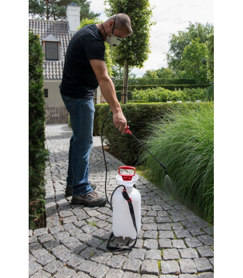 Tento ručný tlakový postrekovač vybavený popruhom a nastaviteľnou tryskou je vhodný najmä pre postrek rastlín, ale tiež napr. Na ničenie burín apd. Postrekovač je vybavený pretlakovým ventilom a kvalitným tesnením VITON, ktoré umožňuje použitie i agresívnejších kvapalín a je odolnejšia proti predčasnému starnutiu.