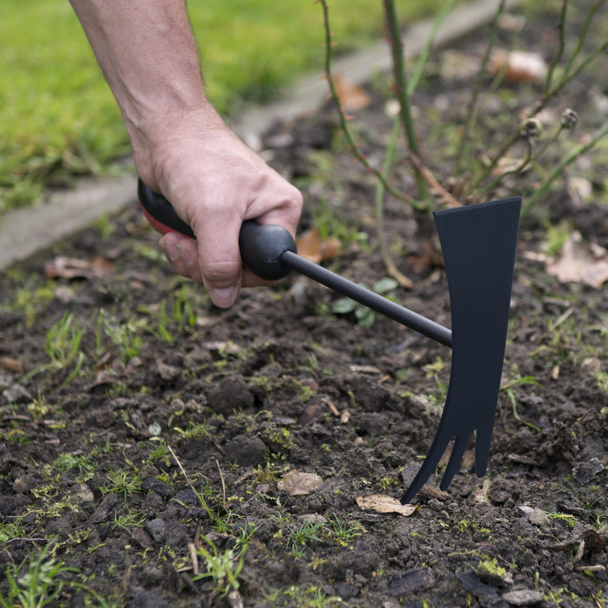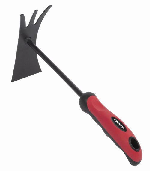 Táto ručná motyčka KRTGR7005 značky Kreator má šírku 19 cm a dĺžku 34 cm. Rýchlo a ľahko skyprite alebo urovnáte pôdu, odstránite burinu a ďalšie. S touto motykou a trojzubcom 2 v 1 je ľahké pracovať presne, aj keď sú rastliny blízko pri sebe. Nástroj je vyrobený z vysoko kvalitnej ocele, ktorá je potiahnutá jemnou čiernou vrstvou. Tento náter je nielen príjemný na pohľad, ale tiež chráni pred dažďom, vetrom, mrazom... a chráni pred hrdzou. Rukoväť má ergonomický tvar a mäkkú rukoväť, preto sa príjemne používa.