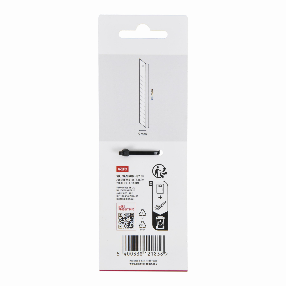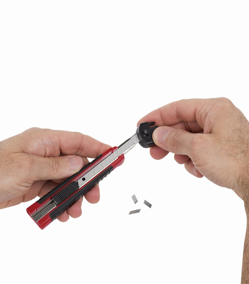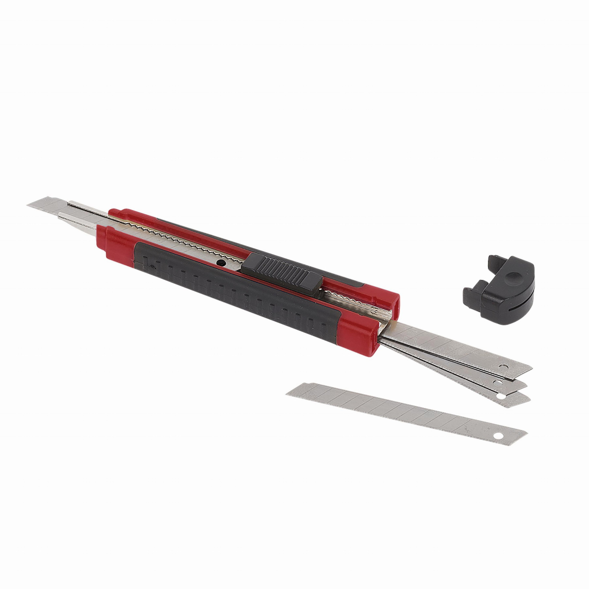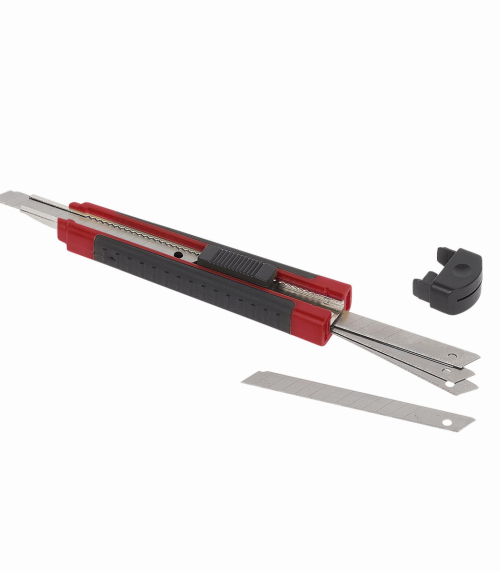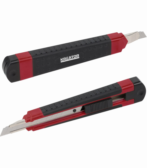 Ľahko režte papier, kartón, tapetu, pásku a ďalšie materiály s týmto KRTH00106 od Kreator extra dlhým odlamovacím nožom s dĺžkou 80 mm. Mäkká gumová rukoväť poskytuje lepší úchop a pohodlné používanie nástroja. Pre vašu bezpečnosť sa čepeľ dá po použití okamžite zasunúť späť. Čepeľ môžete zaaretovať pomocou zaisťovacieho mechanizmu. Keď bude potrebná nová, ostrejšia čepeľ, jednoducho odlomíte tupú časť pomocou odlamovača na čepeľ. V dutej rukoväti je možné uložiť až tri náhradné čepele.