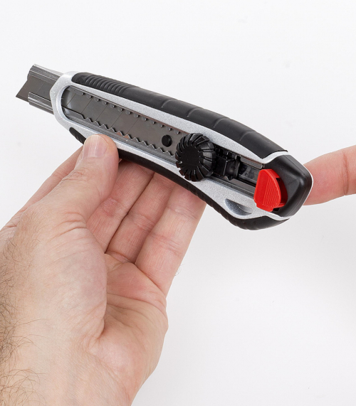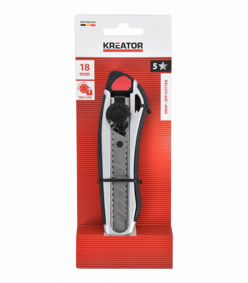 S týmto automatickým odlamovacím nožom KRTH00204 od Kreator ľahko režete papier, kartón, tapety, pásky a ďalšie materiály. Je vyrobený z hliníka, takže je robustný a ľahký. Mäkká gumová rukoväť zaisťuje pevný úchop a pohodlné používanie. Pre vašu bezpečnosť sa čepeľ po použití okamžite zasunie. Čepeľ môžete zaaretovať pomocou zaisťovacieho mechanizmu.