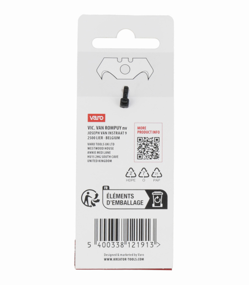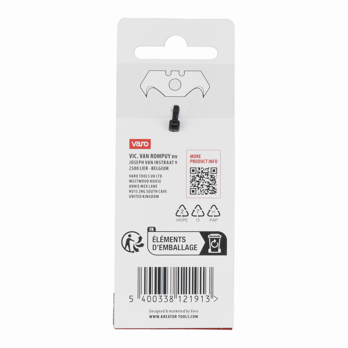 Toto je 10-dielna súprava náhradných čepelí KRTH00302 od Kreator pre pracovné nože. Tieto zahnuté čepele s dĺžkou 48 mm a šírkou 18 mm je možné ľahko vymeniť. Sú ideálne na rezanie silných materiálov, ako sú koberce, vinyl a strešné krytiny.