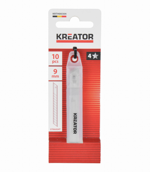 Toto je 10-dielna sada odlamovacích čepelí KRTH00304 od Kreator. Rovné náhradné čepele majú šírku 9 mm a pasujú na väčšinu odlamovacích rezačiek rovnakej šírky.