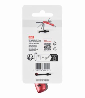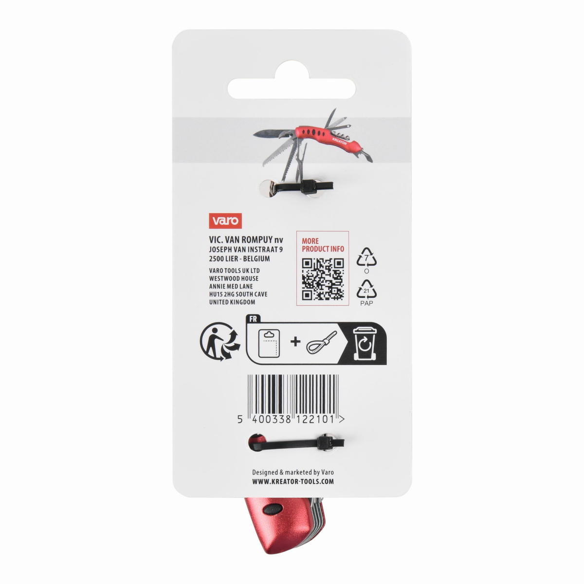 Tento kvalitný vreckový nôž KRTH00802 značky Kreator z nerezovej ocele ponúka minimálne 15 rôznych funkcií. Je vybavený nožnicami, vývrtkou, otváračom na fľaše, skrutkovačom, pilníkom na nechty a pílou. Má štíhly, ergonomický tvar. Pevný a pritom ľahký vreckový nôž z hliníka meria po zložení 9 cm a ľahko sa zmestí do vrecka alebo tašky.
