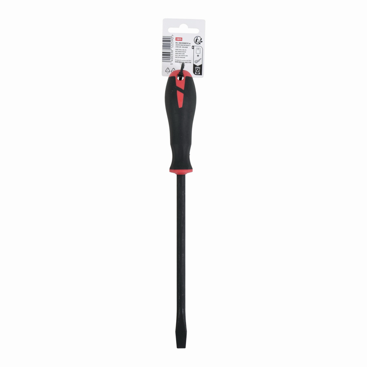 Tento plochý skrutkovač 10 KRTH20307 z nášho radu Kreator má 200 mm dlhú stopku a je vyrobený z vysoko kvalitnej ocele S2. Magnetický hrot urýchľuje proces skrutkovania. Mäkká protišmyková rukoväť poskytuje pevný úchop a rukoväť má integrované závesné oko pre ľahké skladovanie.