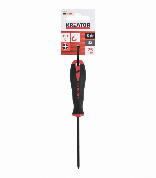 Tento skrutkovač KRTH20601 z nášho radu Kreator má 75 mm dlhú stopku a je vyrobený z vysoko kvalitnej ocele S2. Magnetický hrot PH0 urýchľuje proces skrutkovania. Mäkká protišmyková rukoväť poskytuje pevný úchop a rukoväť má integrované závesné oko pre ľahké skladovanie.
