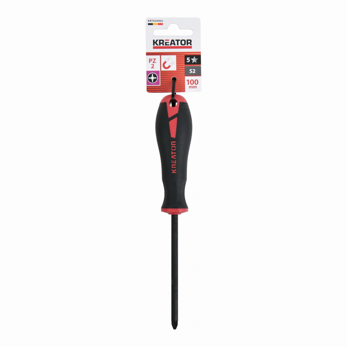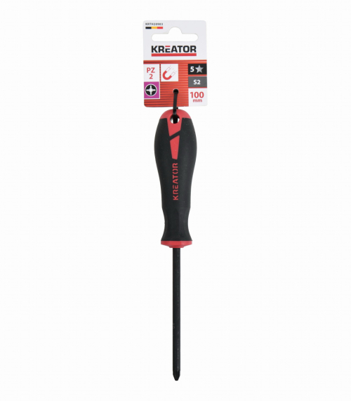 Tento skrutkovač KRTH20903 z nášho radu Kreator má 100 mm dlhú stopku a je vyrobený z vysoko kvalitnej ocele S2. Magnetický hrot PZ2 urýchľuje proces skrutkovania. Mäkká protišmyková rukoväť poskytuje pevný úchop a rukoväť má integrované závesné oko pre ľahké skladovanie.