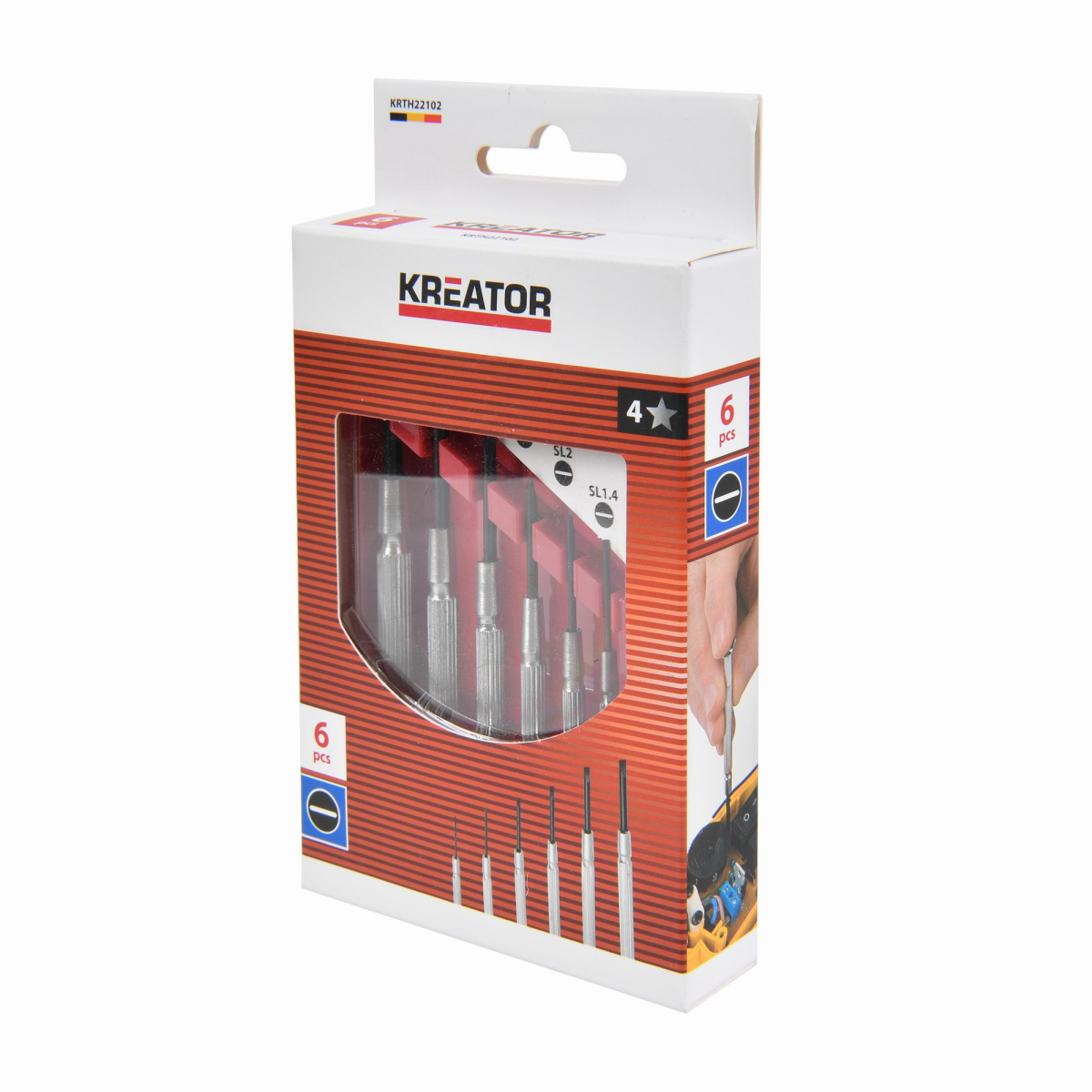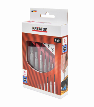 Tieto presné skrutkovače KRTH22101 značky Kreator sú ideálne na detailnú a presnú prácu. Súprava obsahuje 6 plochých a phillips skrutkovačov.