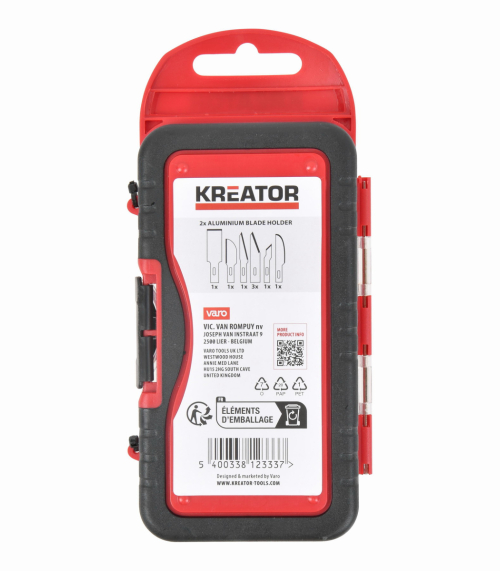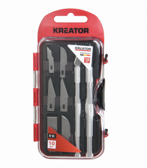 Táto sada modelárskych nožíkov KRTH23201 z nášho radu Kreator je ideálna pre detailnú prácu. Okrem 8dielnych čepelí obsahuje sada aj 2 dlhé hliníkové rukoväte nožov. Tieto praktické modelárske nožíky majú niekoľko využití, napríklad pre modelárstvo alebo presné rezanie papiera a kartónu.