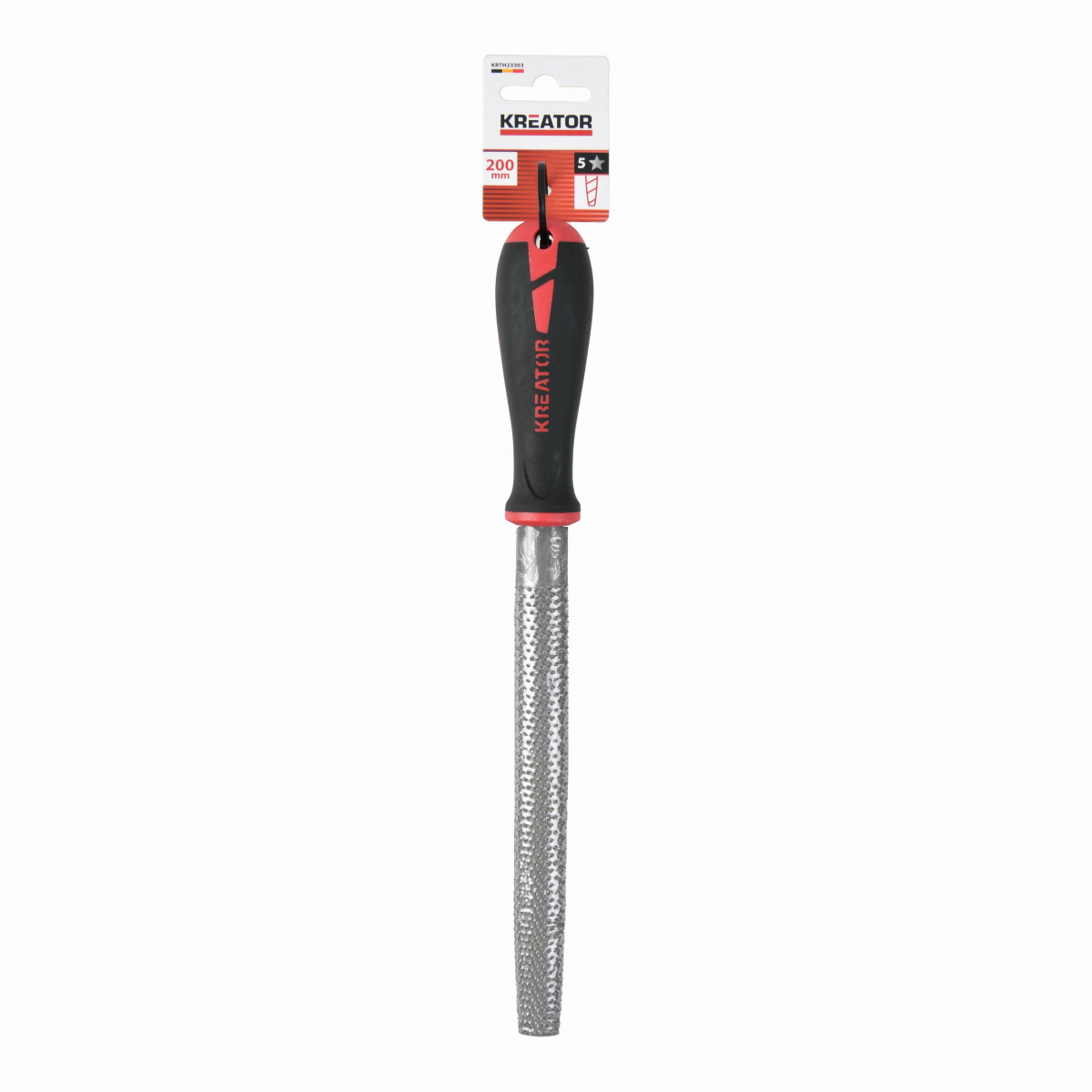 Polguľatá rašpľa KRTH23303 z nášho radu Kreator na drevo má dĺžku 200 mm. Polguľatá rašpľa slúži na rýchle hrubé opracovanie a tvarovanie zakrivených povrchov. Vďaka svojmu tvaru sa hodí pre tesárske, sochárske, modelárske, reštaurátorské práce a na vytváranie zaoblených profilov. Je vybavená ergonomickou rukoväťou s mäkkým úchopom a protišmykovou vrstvou. Rukoväť má navyše integrované závesné oko na jednoduché skladovanie.