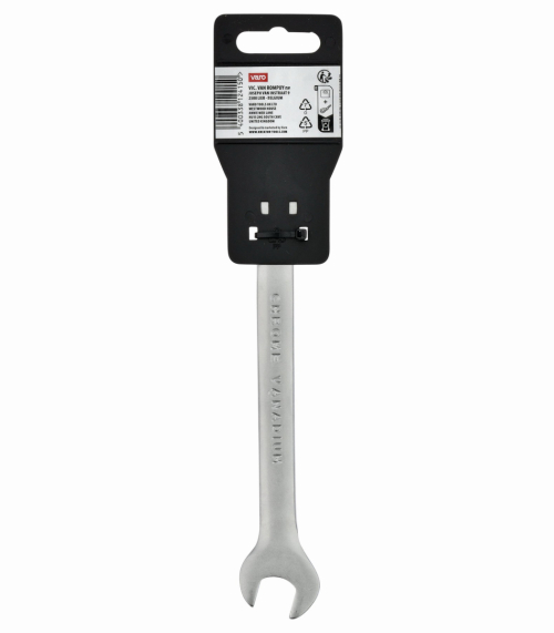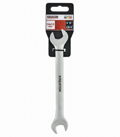 Tento dvojitý otvorený kľúč KRTH30205 od Kreator má dĺžku 175 mm a je vyrobený z vysoko kvalitného chróm-vanádiového zliatiny. Konce majú otvory rôznych veľkostí. Jeden je široký 14 mm a druhý 15 mm.