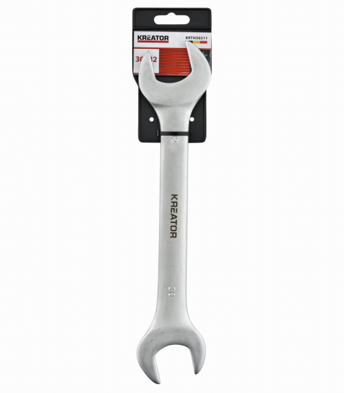 Tento dvojitý otvorený kľúč KRTH30211 od Kreator má dĺžku 280 mm a je vyrobený z vysoko kvalitného chróm-vanádiového zliatiny. Konce majú otvory rôznych veľkostí. Jeden je široký 30 mm a druhý 32 mm.