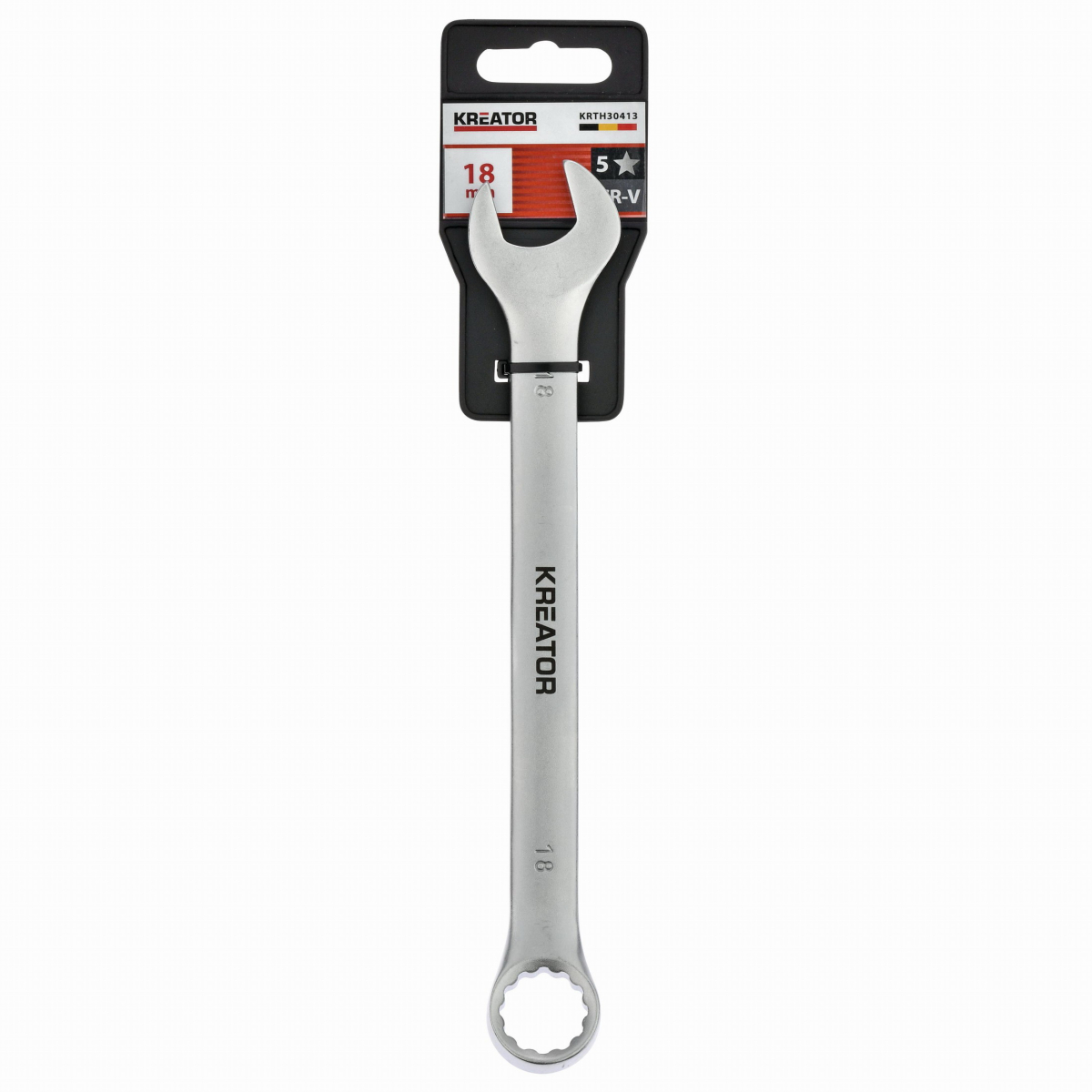 Tento kombinovaný očko/otvorený kľúč KRTH30413 značky Kreator je vyrobený z robustnej chróm-vanádiovej zliatiny. Eliptický tvar drieku zaisťuje lepší prenos sily. Je dlhý 215 mm a má priemer 18 mm.