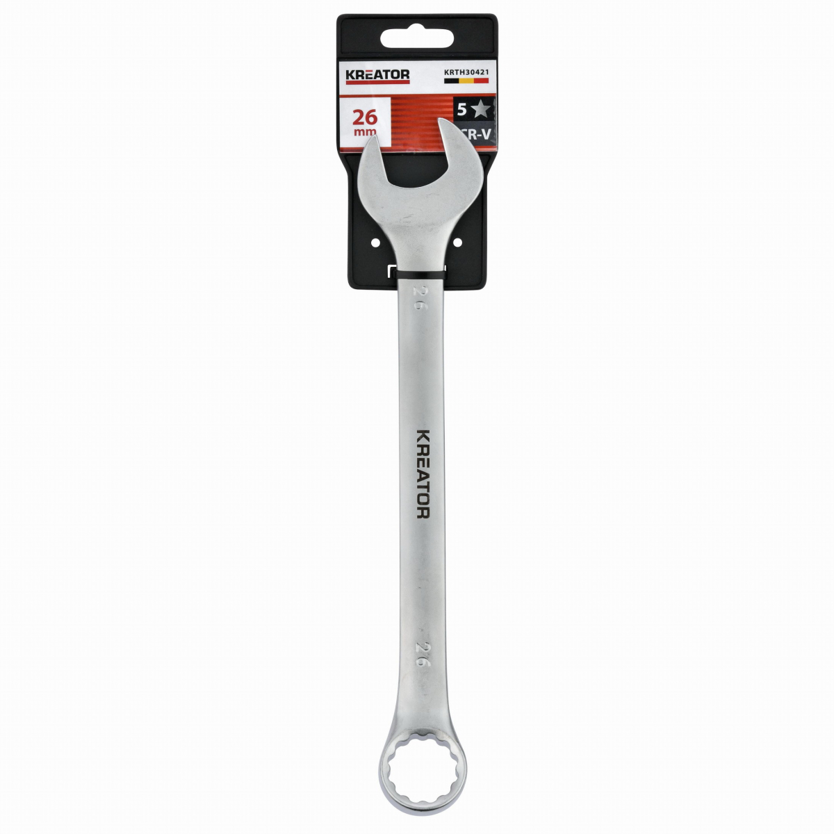 Tento kombinovaný očko/otvorený kľúč KRTH30421 značky Kreator je vyrobený z robustnej chróm-vanádiovej zliatiny. Eliptický tvar drieku zaisťuje lepší prenos sily. Je dlhý 295 mm a má priemer 26 mm.