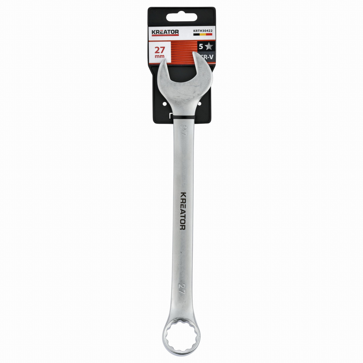 Tento kombinovaný očko/otvorený kľúč KRTH30422 značky Kreator je vyrobený z robustnej chróm-vanádiovej zliatiny. Eliptický tvar drieku zaisťuje lepší prenos sily. Je dlhý 305 mm a má priemer 27 mm.