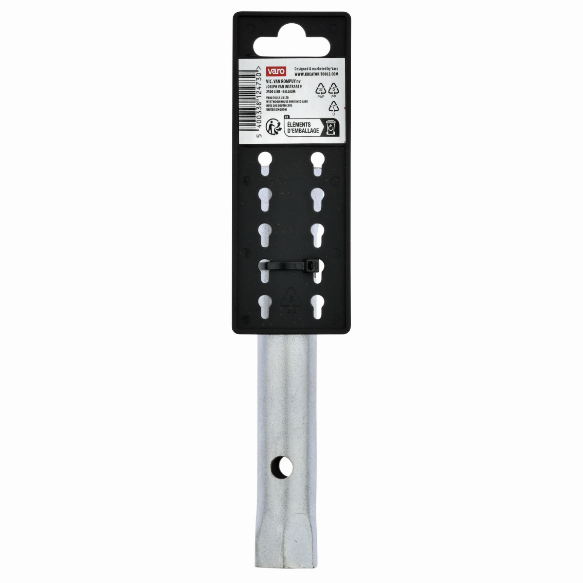 Tento obojstranný rúrkový očkový kľúč KRTH30604 značky Kreator má dĺžku 156 mm a je ideálnym nástrojom na uťahovanie a povoľovanie zapustených skrutiek a matíc, s T-rukoväťou alebo bez nej. Jeho tvar umožňuje prácu v úzkych priestoroch alebo blízko stien. Kľúč má na každej strane dve rôzne veľkosti: 21 mm a 23 mm.
