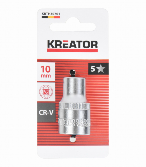 Tento nástrčný klíč KRTH30701 od Kreator o rozměru 10mm použijte k povolování nebo utahování matic a šroubů. Nástrčný klíč je vyroben z robustní chrom-vanadiové slitiny a má upínací velikost 1/2".