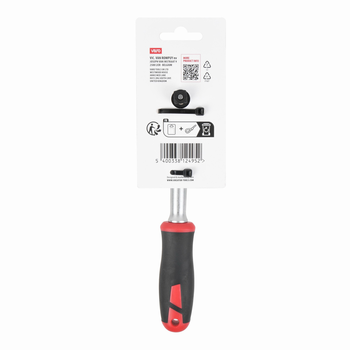Táto račňa s upínaním 3/8" KRTH30905 z nášho radu Kreator je vyrobená z robustnej chróm-molybdénovej zliatiny. Račňa má mäkkú, protišmykovú gumovú rukoväť a je užitočná pri povoľovaní alebo uťahovaní skrutiek, napr. pri výmene pneumatík automobilu.... více
