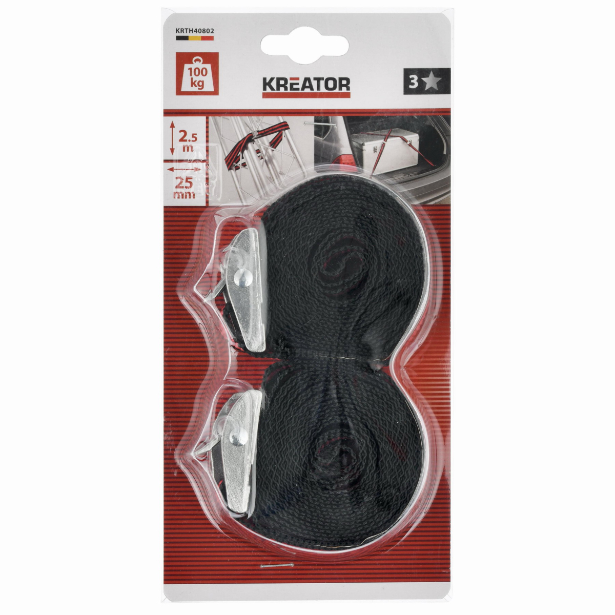 Upínací popruh so sponou (kurtna) KRTH40802 z nášho radu Kreator slúži k rýchlemu, ľahkému a pevnému zaisteniu nákladu pri preprave alebo skladovaní. Tento typ popruhov je ideálny pre ľahšie až stredne ťažké predmety, pretože sa uťahuje ručne prevlečením popruhu sponou. Tento upevňovací popruh zvládne hmotnosť až 100 kg, je dlhý 2,5 ma široký 25 mm. Balenie obsahuje 2ks upínacích popruhov.