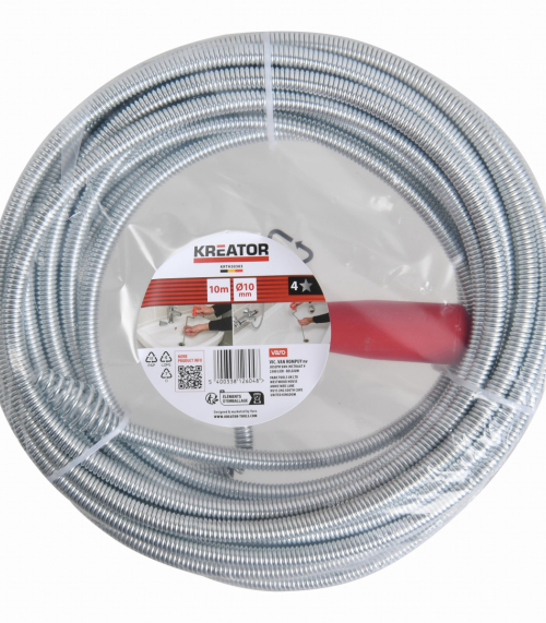 Toto čistiace preťahovacie pero KRTH50303 značky Kreator na odpad má dĺžku 10 ma priemer 10 mm a je vyrobené z veľmi kvalitnej uhlíkovej ocele. Je vybavené malým vŕtacím hrotom, ktorý rýchlo prerazí upchávku a ľahko uvoľní upchatý odtok.
