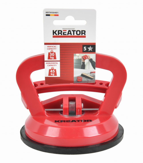 Túto prísavku KRTH50401 od Kreator je možné použiť na pevné uchytenie na dlaždiciach, zrkadlách, oknách alebo iných klzkých predmetoch, ktoré sa ťažko prenášajú. Rýchloupínacie páčky zaisťujú bezpečné uchytenie prísavky a tiež jej ľahké sňatie bez zanechania stôp. Prísavka s priemerom 115 mm unesie až 30 kg zvisle a 45 kg vodorovne.
