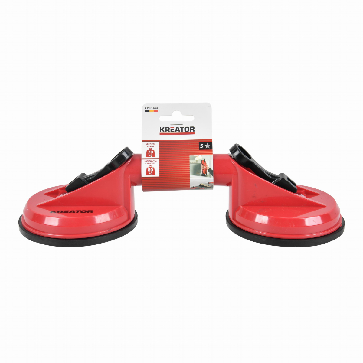 Túto dvojbodovú prísavku KRTH50402 od Kreator je možné použiť na pevné uchytenie na dlaždiciach, zrkadlách, oknách alebo iných klzkých predmetoch, ktoré sa ťažko prenášajú. Rýchloupínacie páčky zaisťujú bezpečné uchytenie prísavky a tiež jej ľahké sňatie bez zanechania stôp. Prísavka s priemerom 115 mm unesie až 70 kg zvisle a 80 kg vodorovne.