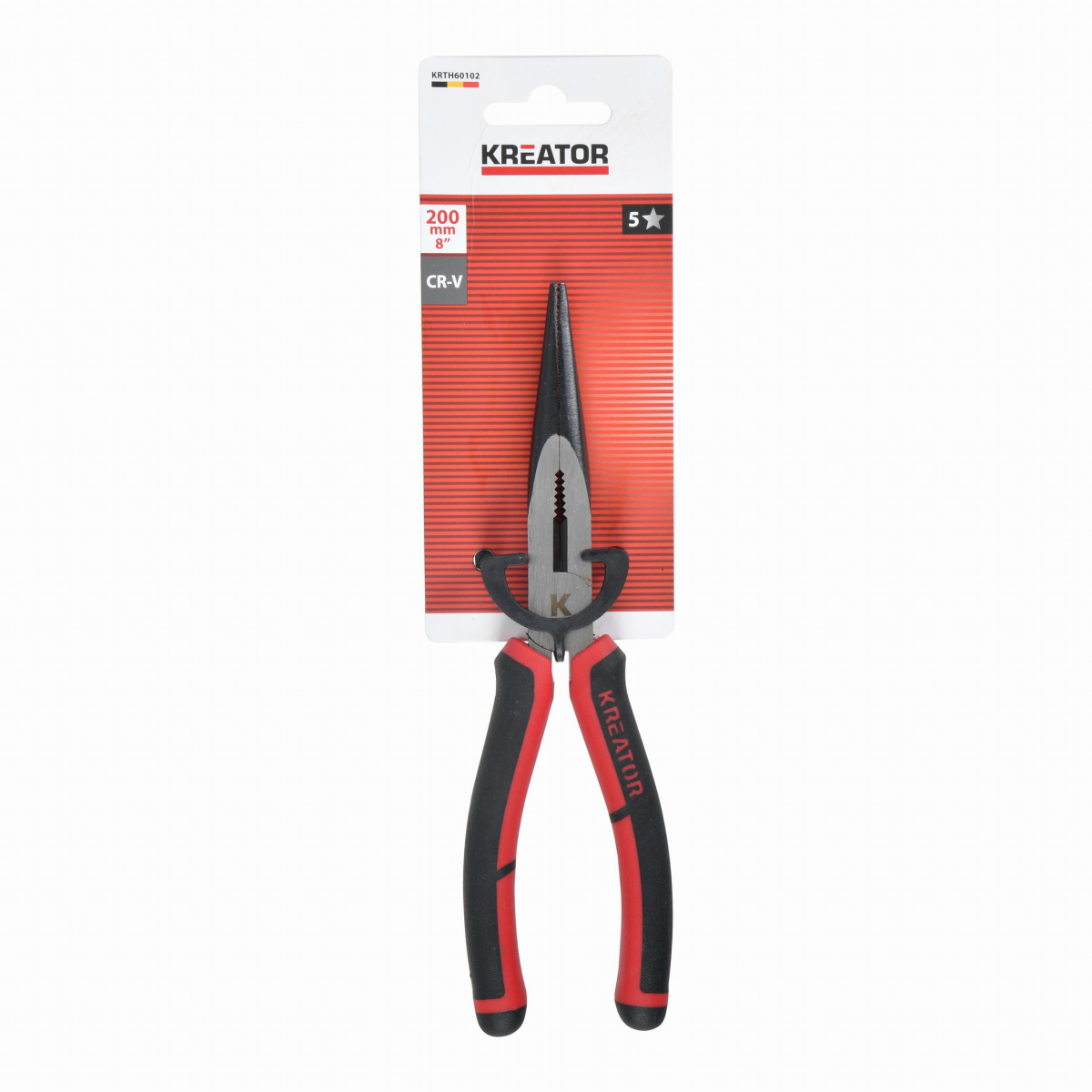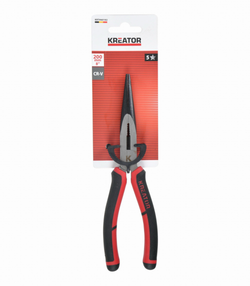 Tieto vysoko kvalitné kliešte KRTH60102 od Kreator s dlhými plochými čeľusťami je možné použiť na držanie, strihanie, odizolovanie a krimpovanie vodičov s priemerom až 50 mm. Sú vyrobené z materiálu CR-V s povrchovou úpravou satín a majú dĺžku 200 mm. Mäkké gumové rukoväte poskytujú pevný, protišmykový úchop a pohodlné používanie.