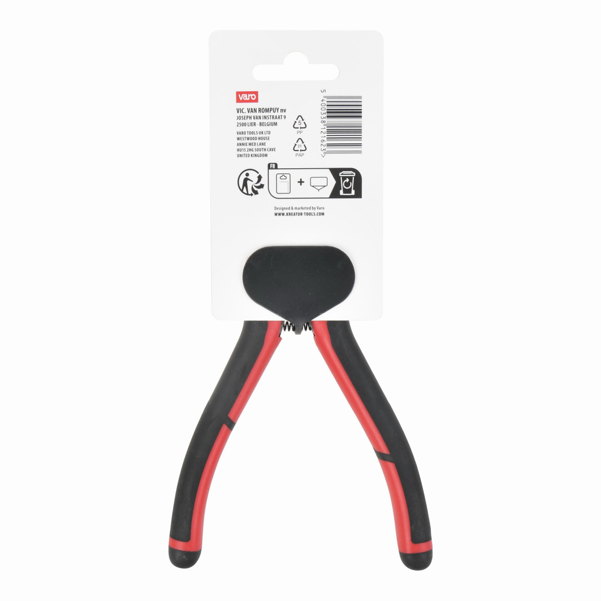 Tieto kliešte na poistné krúžky KRTH60903 z nášho radu Kreator majú dĺžku 175 mm a sú ideálne na upevňovanie alebo odstraňovanie vnútorných poistných krúžkov. Sú vyrobené z robustnej uhlíkovej ocele a jej mäkké gumové rukoväte poskytujú pevný, protišmykový úchop a pohodlné používanie.