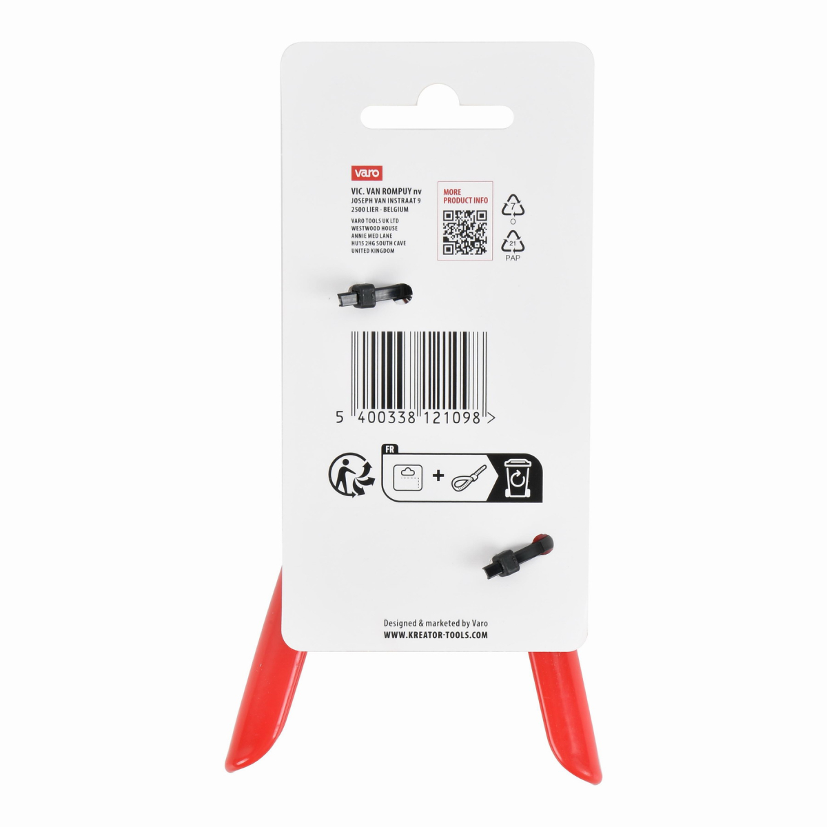 Tieto kliešte na priechodky/očká KRTH62501 z nášho radu Kreator možno použiť na pripevnenie očiek na textílie a iné tenké materiály s maximálnym priemerom 4,5 mm. Mäkké protišmykové rukoväte zaisťujú pevný úchop.