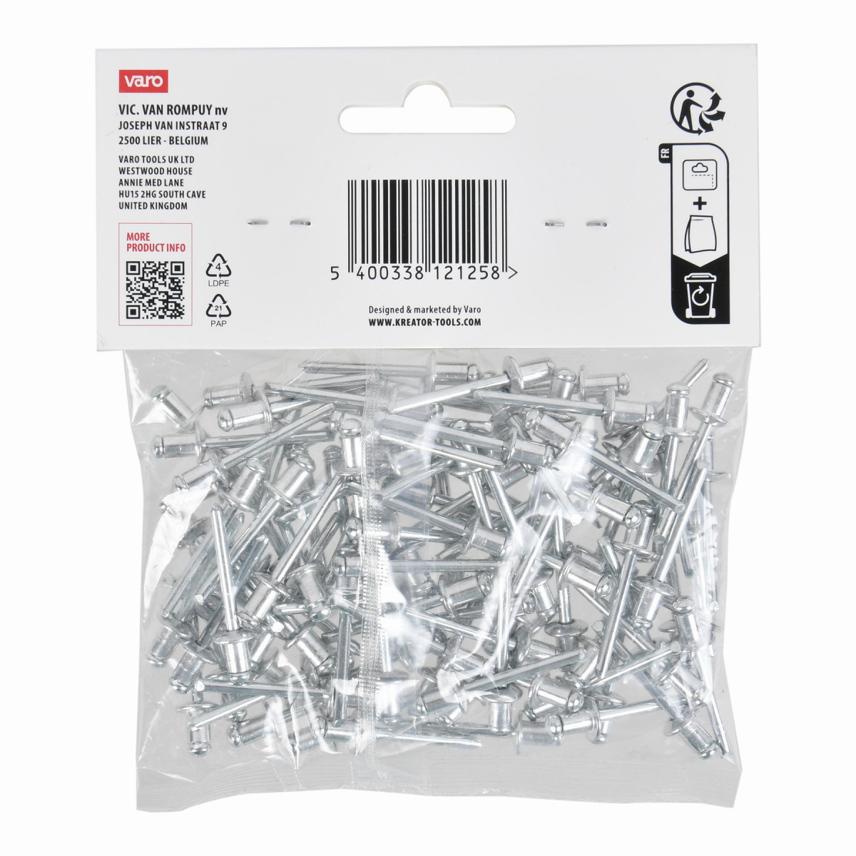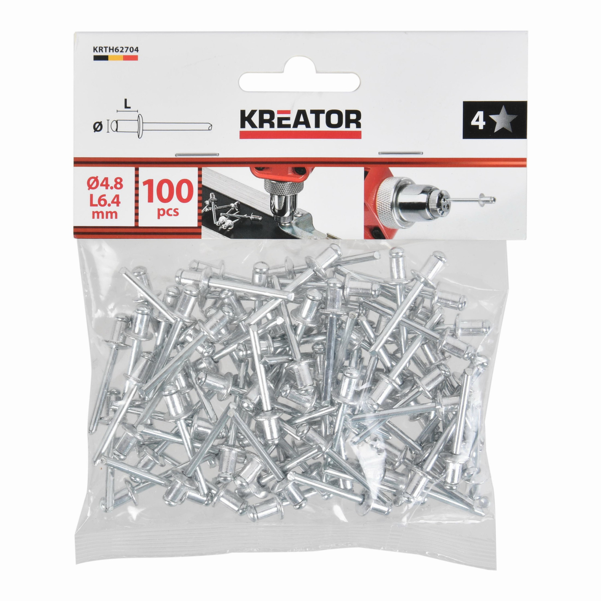 Tieto trhacie nity KRTH62704 z nášho radu Kreator majú priemer 4,8 mm. Používajte ich na rýchle a bezskrutkové spojenie kovových, hliníkových alebo plastových predmetov s hrúbkou až 3 mm. To sa vykonáva pomocou nitovacích klieští. Balenie obsahuje 100ks.