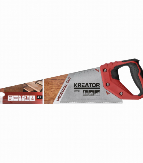 Táto ručná píla KRTH8001 značky Kreator má 7 zubov na palec (TPI), čo ju robí ideálnou pre presné a detailné rezanie. Flexibilná oceľová čepeľ dlhá 400 mm je vybavená kalenými zubami brúsenými v troch rôznych uhloch, čo zaručuje vždy ostré a čisté rezy. Pílka má navyše vodítka pre presné rezy pod uhlom 45° a 90° a stupnici v milimetroch. Vďaka mäkčenej rukoväti je ručná píla veľmi praktickým nástrojom pre každého remeselníka.