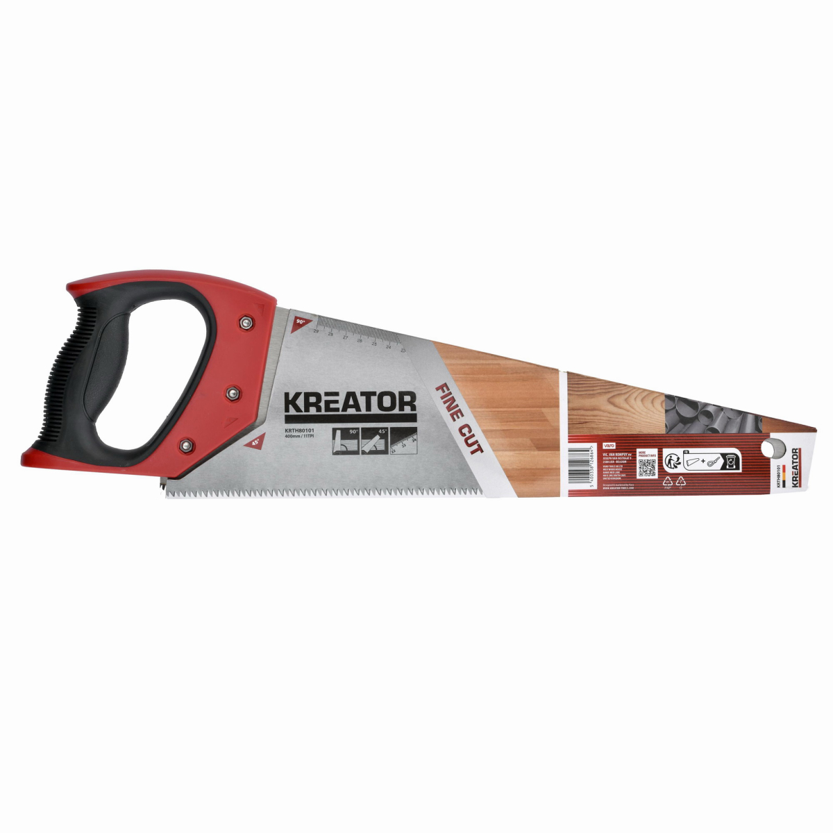 Táto ručná píla KRTH80101 značky Kreator má 11 zubov na palec (TPI), čo ju robí ideálnou pre presné a detailné rezanie. Flexibilná oceľová čepeľ dlhá 400 mm je vybavená kalenými zubami brúsenými v troch rôznych uhloch, čo zaručuje vždy ostré a čisté rezy. Pílka má navyše vodítka pre presné rezy pod uhlom 45 ° a 90 ° a stupnici v milimetroch. Vďaka mäkčenej rukoväti je ručná píla veľmi praktickým nástrojom pre každého remeselníka a zaisťuje pevný a pohodlný úchop.