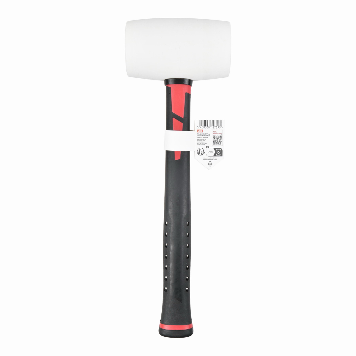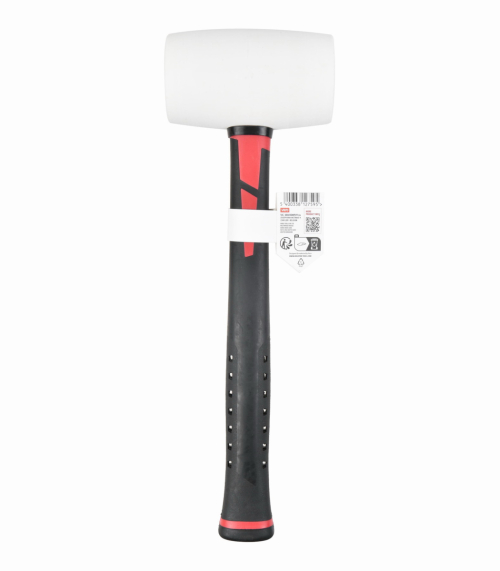 Táto palica s gumovou bielou hlavou KRTH90706 z nášho radu Kreator je vybavená ergonomickou rukoväťou zo sklených vlákien s dĺžkou 290 mm a protišmykovou vrstvou pre optimálny a bezpečný úchop. Kladivo váži 900 g a je ideálnym nástrojom na pokládku dlaždíc alebo (prírodného) kameňa. Čierna gumová hlavica nezanecháva na dlaždiciach žiadne stopy.