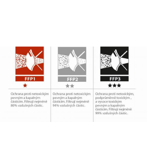 Ochrana proti netoxickým tuhým a kvapalným časticiam (napr. olejovej hmly). Filtrácia aspoň 94% vzdušných častíc