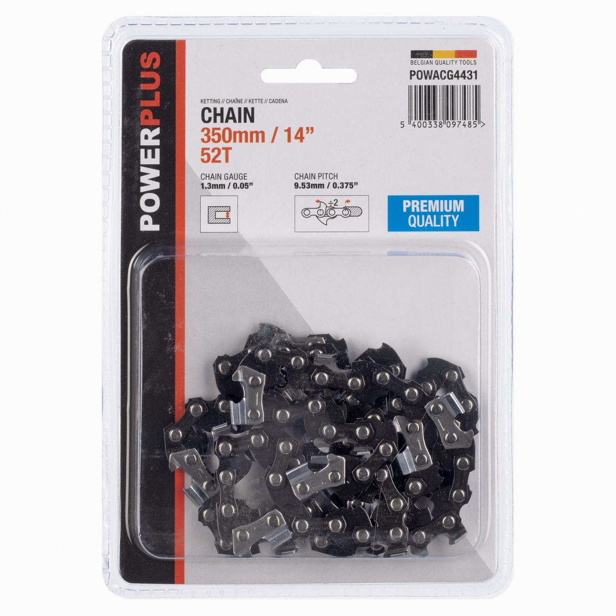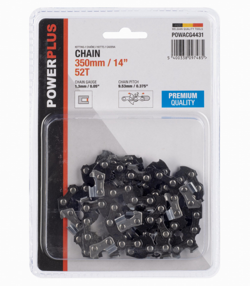 Táto pílová reťaz POWACG4431 od PowerPlus prvotriednej kvality má vylepšenú geometrickú ostrosť. Jeho otočné články eliminujú trenie a zaručujú veľmi čistý rez. Reťaz je kompatibilná s motorovou pílou Powerplus POWEG2010. Týmto vysoko kvalitným reťazou je možné vybaviť aj iné reťazové píly s veľkosťou lišty 350 mm (14“).