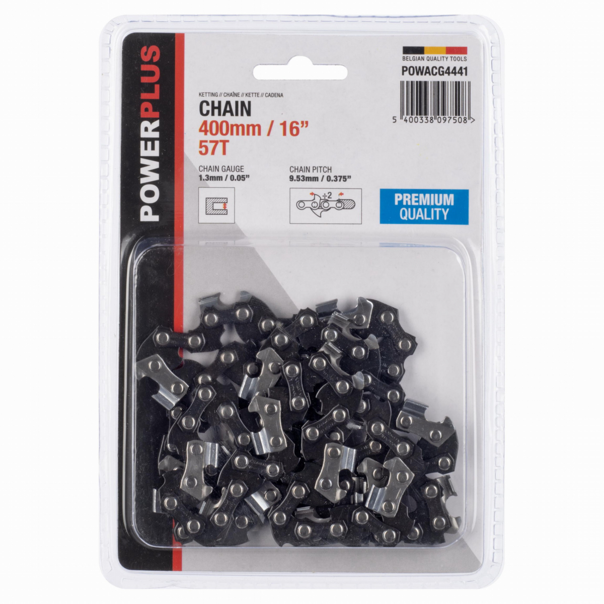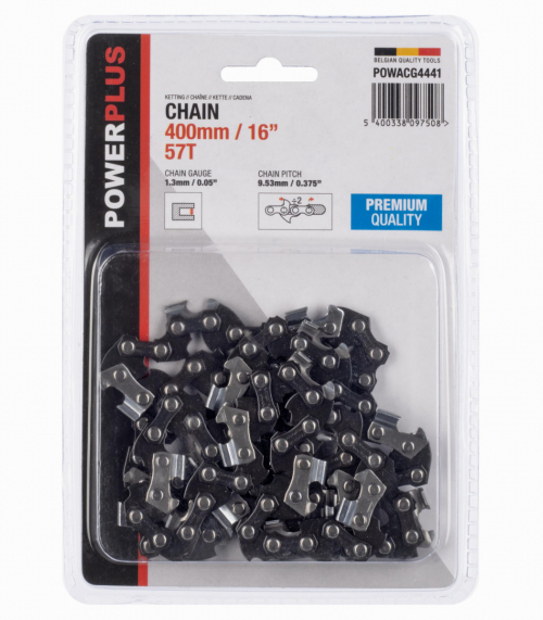 Táto pílová reťaz POWACG4441 od PowerPlus prvotriednej kvality má vylepšenú geometrickú ostrosť. Jeho otočné články eliminujú trenie a zaručujú veľmi čistý rez. Reťaz je kompatibilná s motorovou pílou Powerplus POWEG10110 a POWXG1009. Týmto vysoko kvalitným reťazou je možné vybaviť aj iné reťazové píly s veľkosťou lišty 400 mm (16“).