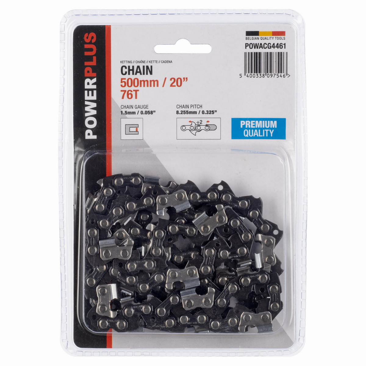 Táto pílová reťaz POWACG4461 od PowerPlus prvotriednej kvality má vylepšenú geometrickú ostrosť. Jeho otočné články eliminujú trenie a zaručujú veľmi čistý rez. Reťaz je kompatibilná s motorovou pílou Powerplus POWEG2030. Týmto vysoko kvalitným reťazou je možné vybaviť aj iné reťazové píly s veľkosťou lišty 500 mm (20“).