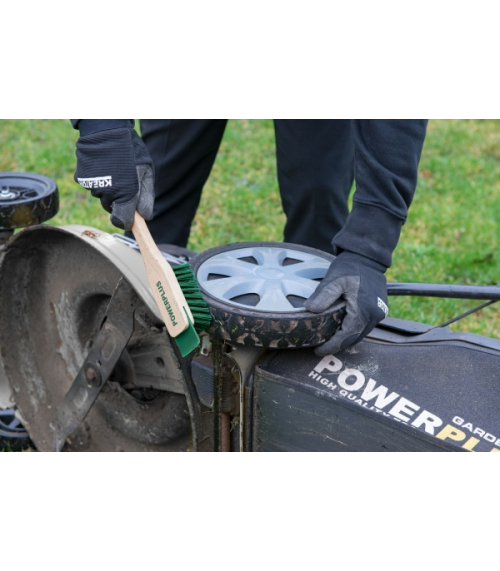 Táto kefa na čistenie kosačiek na trávu od spoločnosti Powerplus je naozaj nevyhnutný pre to, aby bola vaša kosačka na trávu čo najefektívnejšia a bezpečnejšia. Po každom kosení trávnika vyčistíte šasi a kolieska a tým predlžujete životnosť zariadenia. S dlhou drevenou rukoväťou a škrabkou sa ľahko dostanete kamkoľvek. Nylonové štetiny 4,5 cm dokonca ľahko odstráni mokrú trávu.