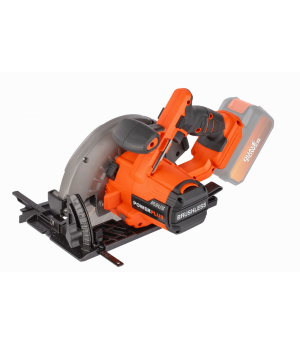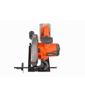 Táto výkonná 40V kotúčová píla POWDP25260 od Powerplus je vhodná na priame a pokosové rezy. List akumulátorovej okružnej píly je možné nakloniť až o 45 °, čo umožňuje vykonávať šikmé rezy do drevených lamiel a dosiek. Bočné vedenie zaručuje presné rovné rezy. Kotúčová píla je vybavená odolným bezkefovým motorom. Vyžaduje menej údržby a má mimoriadne dlhú životnosť. Predlžuje tiež výdrž batérie až o 50%. Pílový kotúč má 24 zubov a priemer 190 mm. To má za následok maximálnu hĺbku rezu 63 mm pre rovné rezy a 41 mm pre úkosové rezy 45 °. Pílový kotúč dosahuje maximálnu rýchlosť otáčania 3800 min-1. Aby sa predišlo zraneniam alebo nehodám, je pílový kotúč takmer úplne chránený bezpečnostným krytom. Motor s pomalým rozbehom akumulátorovej píly poskytuje potrebnú stabilitu a kontrolu, pretože sa spúšťa postupne. Jasný výhľad na obrobok je zaručený vďaka vstavanému pracovnému osvetleniu a možnosťou pripojenia vysávača. Použitie iba so 40V batériami zo série DualPower.