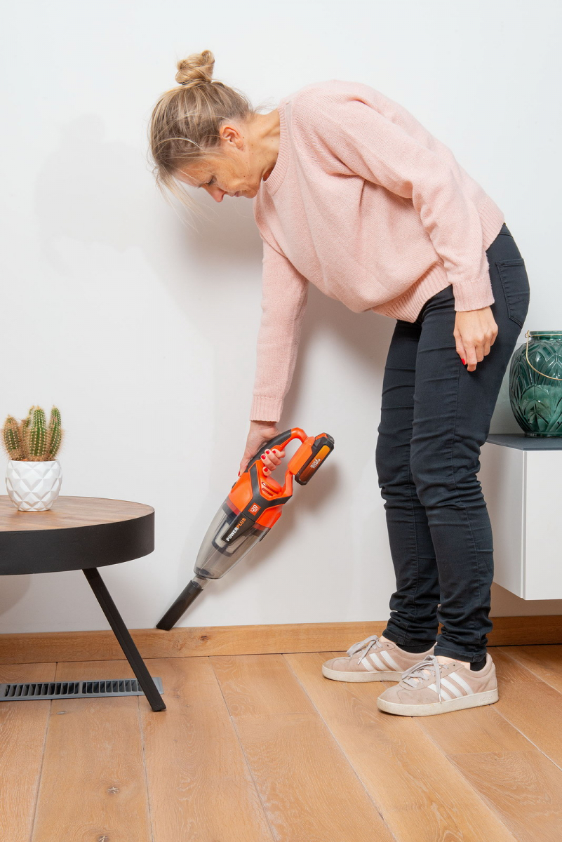 Tento 20V ručný vysávač POWDP6030 od Powerplus sa jednoducho a pohodlne používa. So svojim sacím výkonom 8 kPa je tento ručný vysávač dostatočne výkonný na čistenie stolov, štrbín a štrbín, nábytku a ďalších vecí. Ručný vysávač je napájaný batériou, takže sa ideálne hodí na použitie v miestach bez zástrčiek a zásuviek, ako sú autá. Zariadenie je možné pohodlne ovládať a má ergonomickú mäkkú rukoväť. Zberná nádoba na prach má kapacitu 600 ml. Ľahko sa vyprázdni a čistí. Filter je možné tiež vybrať a vyčistiť. Tým je zaistené správne fungovanie zariadenia a nedochádza k zníženiu sacieho výkonu. Vďaka príslušenstvu je možná široká škála čistiacich úloh. Štrbinová hubica sa zmestí do úzkych miest, kam sa väčšie vysávače nedostanú. Kefová hubica s otočnou kefou je ideálna na čistenie tkanín, ako sú autosedačky alebo pohovky. Predlžovacia trubica zaisťuje pohodlie užívateľa. Použiť môžete batérie zo série DUAL POWER a napätia 20V a taktiež aj batérie s napätím 40V.