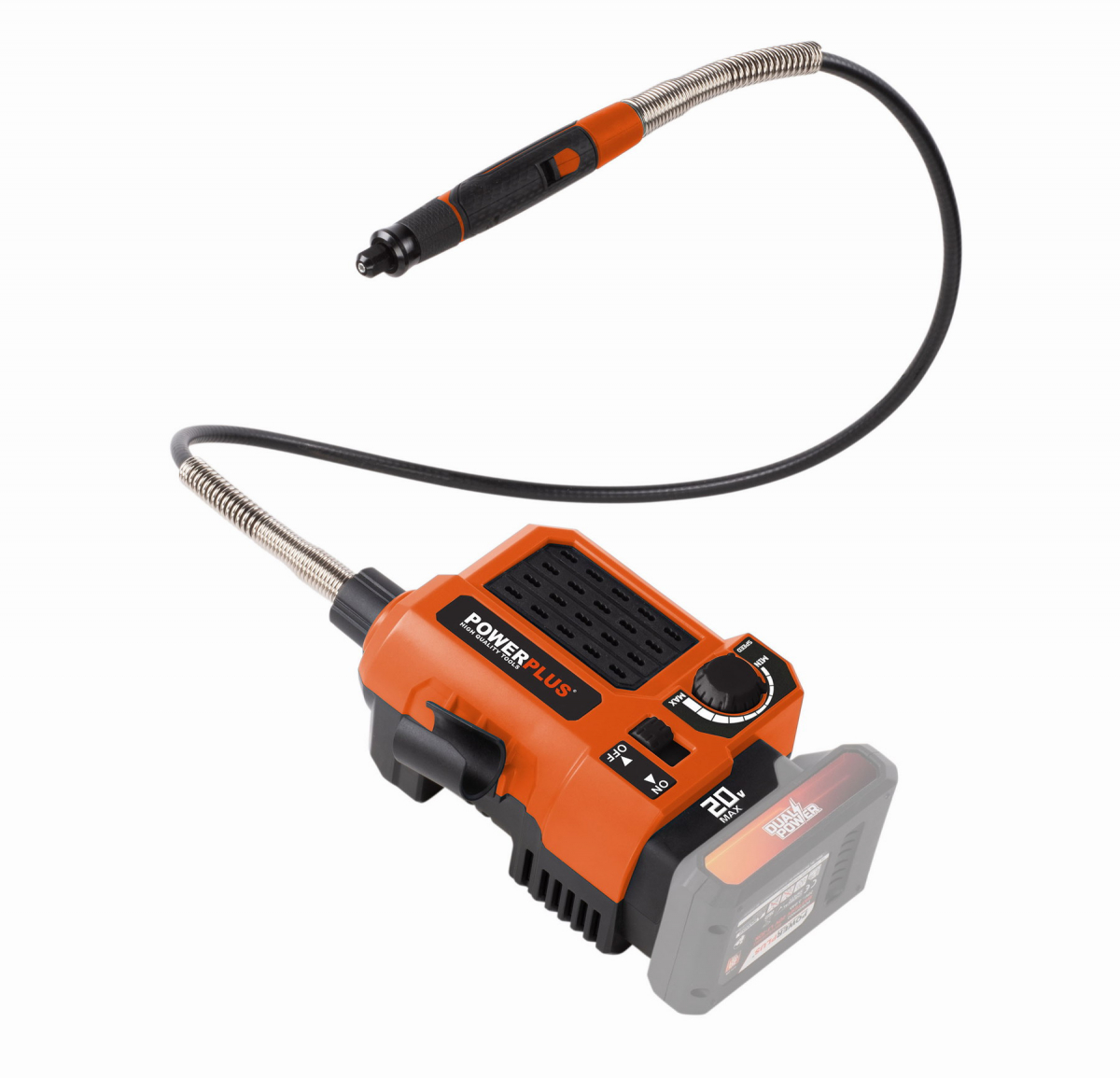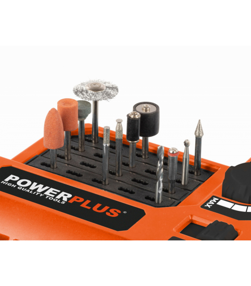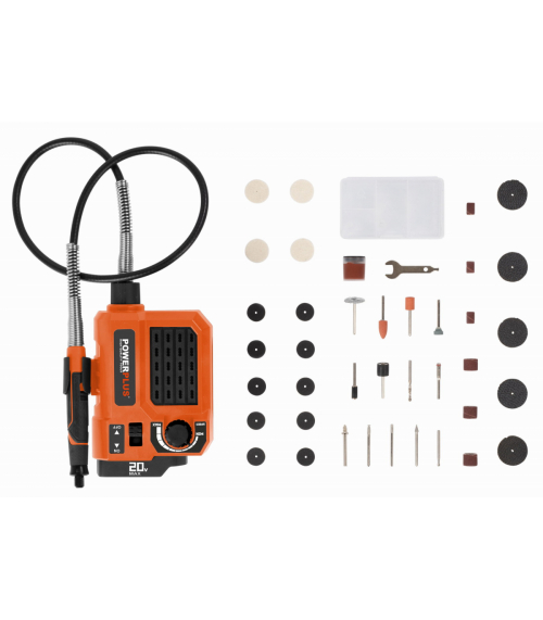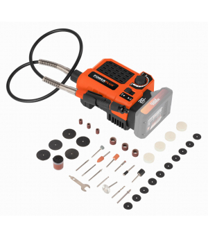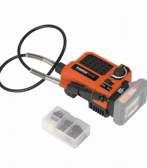 Táto akumulátorová 20 V priama brúska POWDP75300 od PowerPlus je extrémne univerzálna a so 40 doplnkami si poradí aj so širokou škálou kutilských projektov. V závislosti na nástavci môžete stroj použiť na vŕtanie, frézovanie, leštenie, rezanie alebo brúsenie, pričom priložená flexibilná trubica vám poskytne potrebnú voľnosť pohybu. Veľká všestrannosť: Máte na výber medzi 40 rôznymi doplnkami, ktoré vám umožnia množstvo aktivít. Stroj je navyše vybavený elektronickou reguláciou otáčok, takže nastavenie rýchlosti môžete prispôsobiť akémukoľvek projektu. Priama brúska je vybavená motorom s pozvoľným rozbehom, čo znamená, že sa spúšťa pomaly, takže máte vždy plnú kontrolu a navyše má ochranu proti preťaženiu, ktoré zabraňuje prehriatiu stroja. Ohybný hnací hriadeľ Vám poskytuje potrebnú voľnosť pohybu, napríklad keď potrebujete pracovať v rôznych uhloch. Vďaka mäkkej rukoväti sa stroj veľmi pohodlne používa. Stroj je dodávaný bez batérie a nabíjačky. Použiť môžete batérie zo série DUAL POWER s napätím 20V a tiež aj batérie s napätím 40V. Použitie 40V batérie zaisťuje ešte dlhšiu dobu chodu stroja v porovnaní s 20V verziou.
