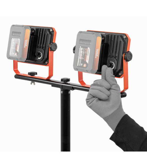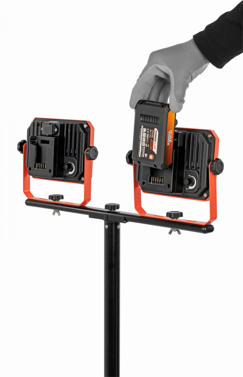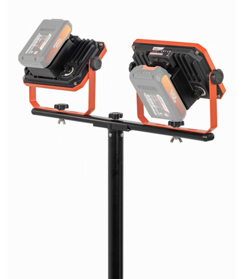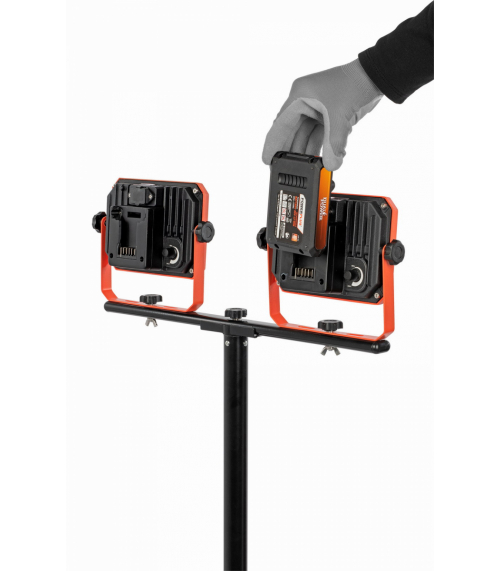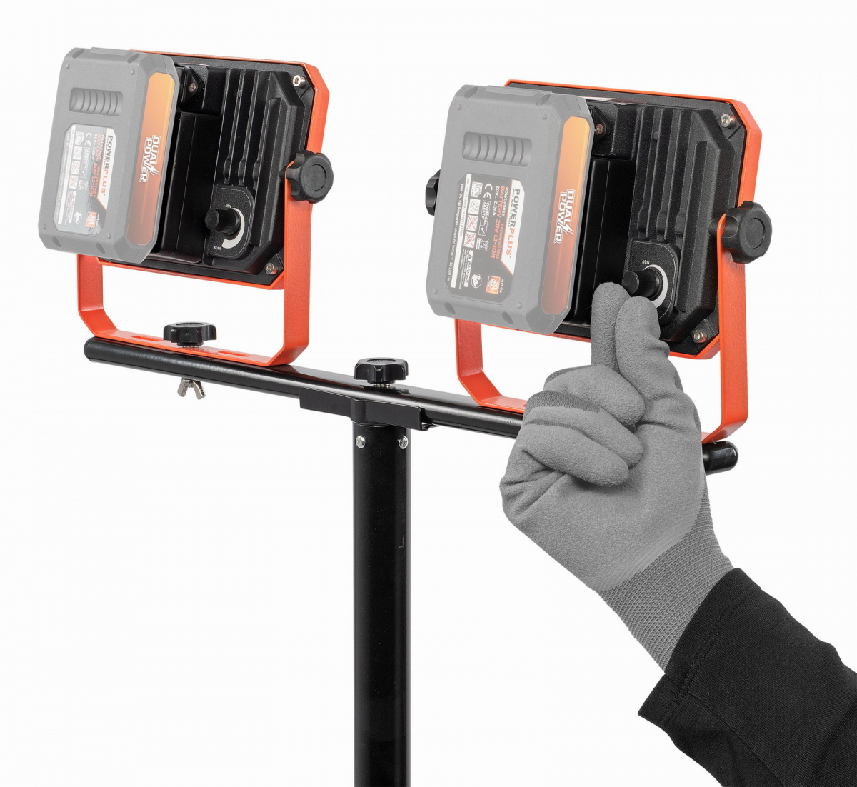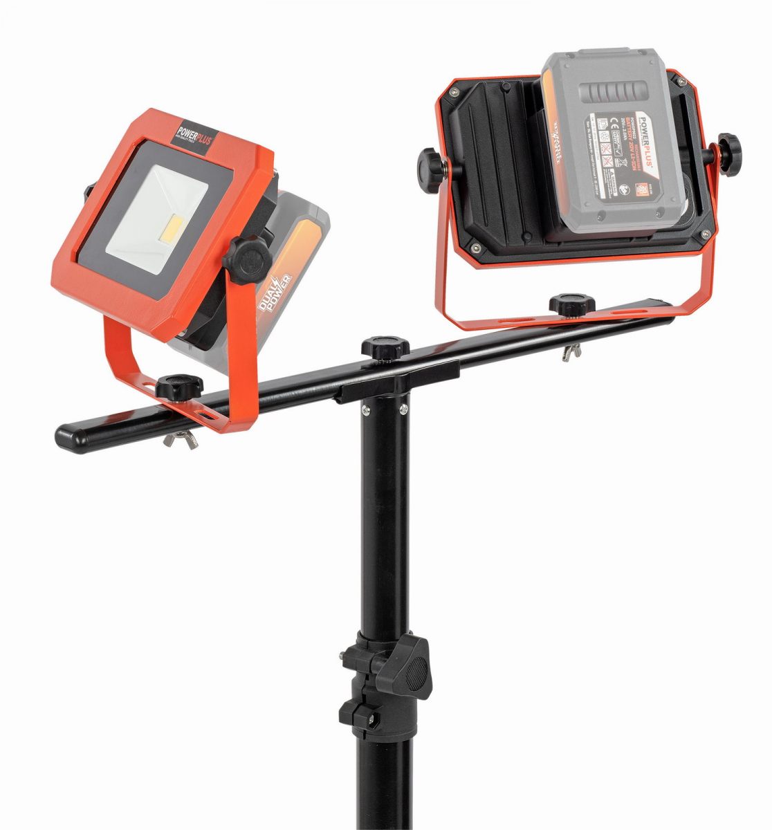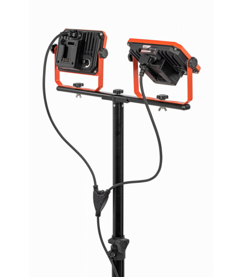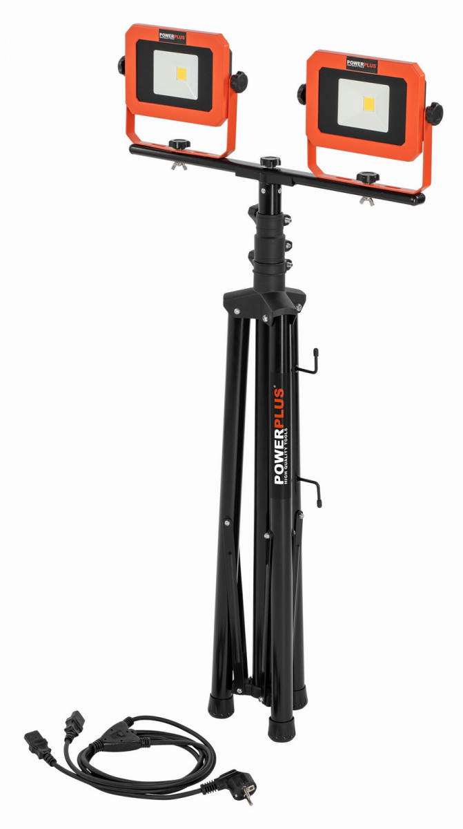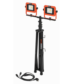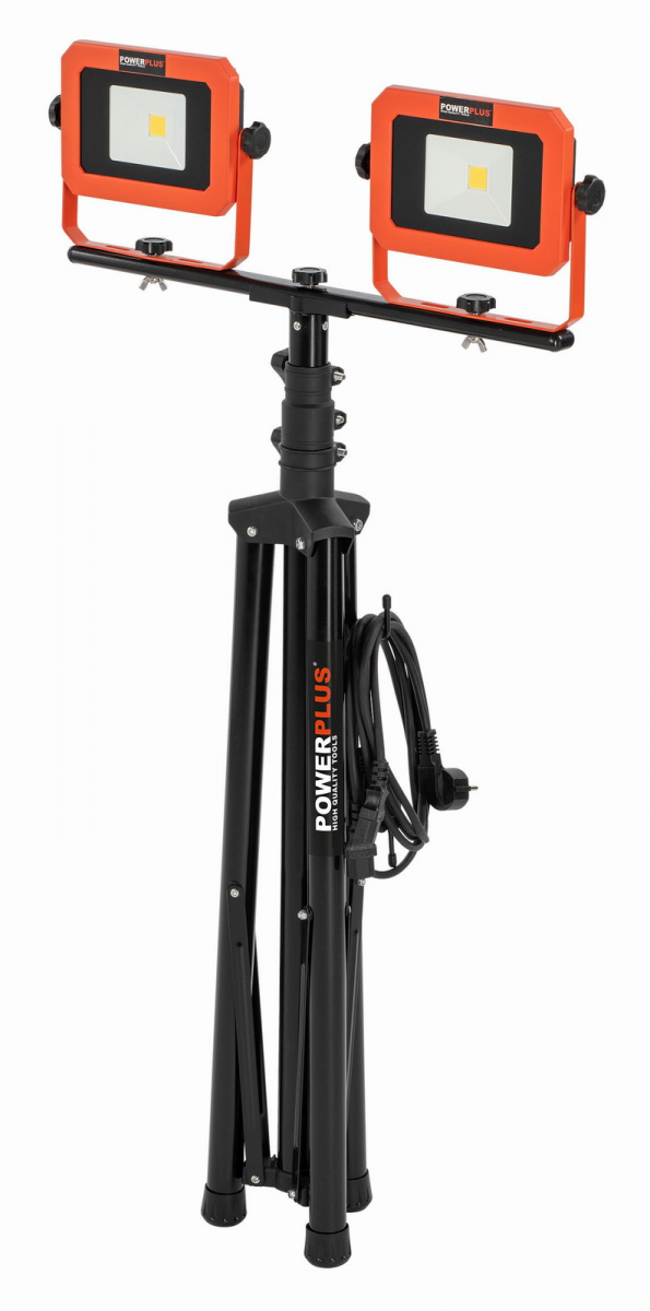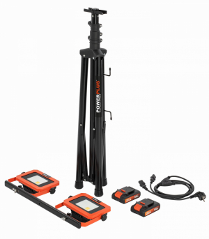 Táto LED 20V pracovná lampa POWDP8035 od PowerPLus je ideálnym zdrojom svetla v mnohých situáciách a vnútorných priestoroch. Pracovná lampa sa skladá z 2 výkonných LED lámp na pevnom statíve. Lampy je možné používať nezávisle na sebe. To je dôvod, prečo je pre každé z dvoch svietidiel potrebná aspoň jedna 20V batéria. Alternatívne je možné lampy pripojiť aj do bežnej elektrickej zásuvky 220V pomocou dodávaného kábla. Statív je teleskopicky výsuvný do výšky 2 metrov. Lampy je možné otáčať horizontálne aj vertikálne o 360 °. Každý z nich má svoj vlastný stmievač pre optimálnu reguláciu intenzity svetla. Preto je možné túto pracovnú lampu Dual Power dokonale prispôsobiť každej situácii. LED žiarovky s dlhou životnosťou majú pri použití plne nabitej batérie 20V 2,0Ah dobu prevádzky minimálne 2 hodiny na plný výkon. Pri použití batérie 40V 4,0Ah sa pracovný čas predĺži na 8 hodín pri plnom výkone. Robustný statív je možné ľahko postaviť a zložiť. Napájací kábel je možné tiež ľahko navinúť na priložené háčiky, takže pracovnú lampu je možné rýchlo a kompaktne uložiť. Použiť môžete batérie zo série DUAL POWER s napätím 20V a tiež aj batérie s napätím 40V. Použitie 40V batérie zaisťuje ešte dlhšiu dobu chodu stroja v porovnaní s 20V verziou.