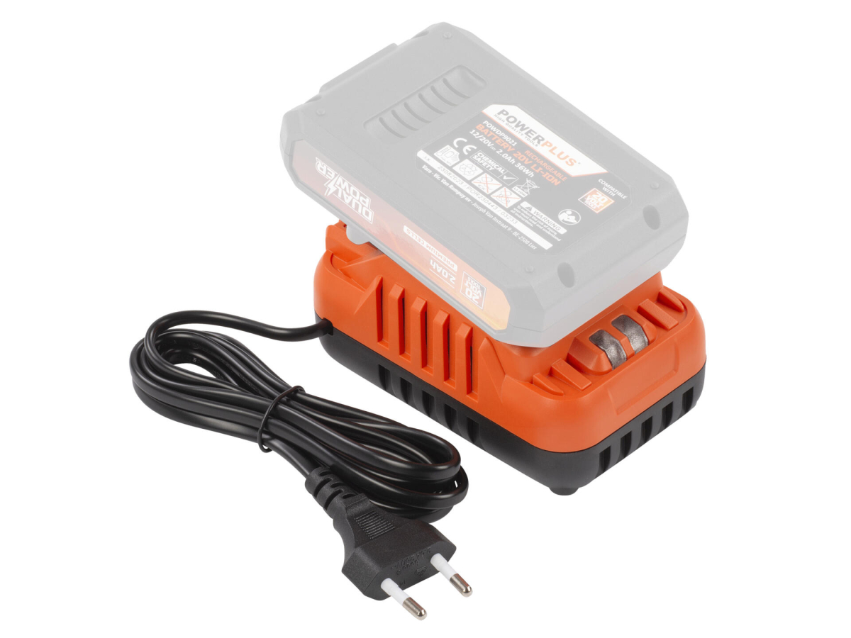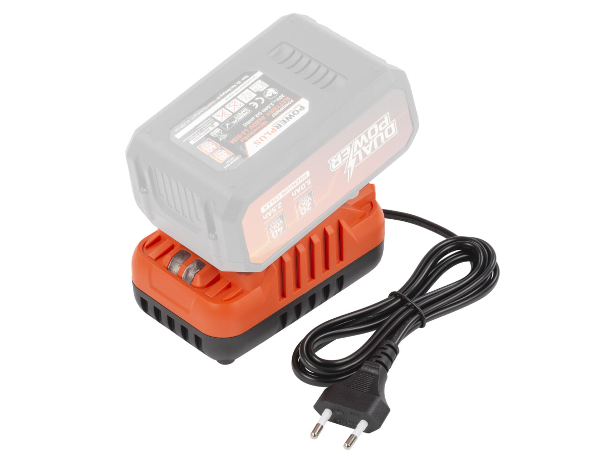 Nabíjačka POWDP9056 od Powerplus je určená pre akumulátory 20V a 40V (2x20V) Dual Power. Vybila sa vám batéria Dual Power? Doba nabíjania je +/- 4 hodiny pre batériu 40V (2x20V) a +/-80 minút pre batériu 20V. Hneď ako je batéria nabitá, červená kontrolka sa rozsvieti zeleno a môžete pokračovať v práci. Vyberajte si z radu Dual Power odolného elektrického náradia napájaného akumulátorom a záhradného náradia. Jedna batériová platforma, dva rady elektrického náradia 20V a 40V a záhradného náradia. V závislosti na projekte, vašom rozpočte a potrebnom výkone nájdete nástroj pre vás v rade Dual Power.