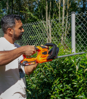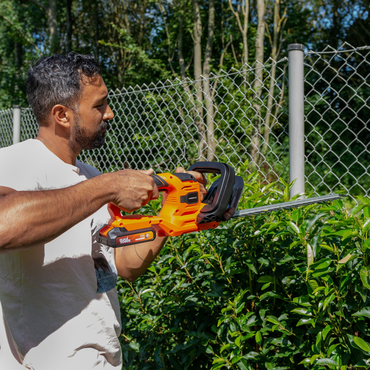 Tieto akumulátorové nožnice na živý plot POWDPG75321 od PowerPlus sú vybavené 20 V motorom, ktorý vám umožní rýchlo strihať živé ploty a kríky so skvelými výsledkami. Tieto nožnice na živý plot s hmotnosťou iba 1,9 kg sú skutočne ľahké, takže sa s nimi ľahko manévruje a ovláda. Ponúka optimálny užívateľský komfort aj pri dlhšej práci. Tieto nožnice na živý plot sú vybavené protibežným ostrím s dĺžkou 515 mm, vďaka čomu sú ideálne pre menšie živé ploty a kríky nerovnomerne tvarované. Okrem toho je ľahko ovládateľný a je možné ho použiť v oblastiach, ktoré sú obvykle ťažko dostupné. S touto čepeľou s dĺžkou 515 mm a dĺžkou strihu 460 mm môžete bez námahy prerezať vetvy s hrúbkou až 15 mm. Táto rezná kapacita je čiastočne určená vzdialenosťou medzi nožmi. Na silnejšie vetvy je najlepšie použiť pílu alebo sekacie nožnice. Protibežná čepeľ sa skladá z dvoch samostatných čepelí pohybujúcich sa v opačných smeroch. Navyše sú to čepele rezané laserom a poskytujú lepšie výsledky rezania. Ak máte so svojou záhradou veľké plány a chcete sa vyhnúť prílišnej ručnej práci, určite sa pozrite na zvyšok produktového radu Powerplus. Okrem nožníc na živý plot ponúkame aj elektrické nožnice, teleskopické reťazové píly, kosačky na trávu a mnoho ďalšieho. Stroj je dodávaný s 20V batériou s kapacitou 2.000 mAh a nabíjačkou. Použiť môžete ďalšie batérie zo série DUAL POWER s napätím 20V a tiež aj batérie s napätím 40V. Použitie 40V batérie zaisťuje ešte dlhšiu dobu chodu stroja v porovnaní s 20V verziou.