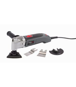 Toto všestranné oscilačné multifunkčné náradie POWE80015 od PowerPlus je výrazne kompaktné a ľahké. Je to perfektná voľba pre všetky malé kutilské projekty okolo domu. Môžete s ním brúsiť, rezať, leštiť, orezávať a mnoho ďalšieho. Tento stroj je dodávaný s nevyhnutným príslušenstvom, ktoré je možné jednoducho prepínať vďaka systému suchého zipsu. POWE80010 má príkon 300 W, čo z neho robí veľmi výkonný, ale ľahký nástroj. V závislosti od úlohy môžete upraviť nastavenia rýchlosti. Mäkčená rukoväť poskytuje potrebný úchop a pohodlie, dĺžka kábla 2 m vám dáva voľnosť pohybu. Vďaka aretačnému tlačidlu sa môžete sústrediť na svoju prácu bez toho, aby ste museli vypínač držať. Súčasťou tohto praktického nástroja je brúsna základňa, škrabka, nôž E-cut a segmentový pílový list.
