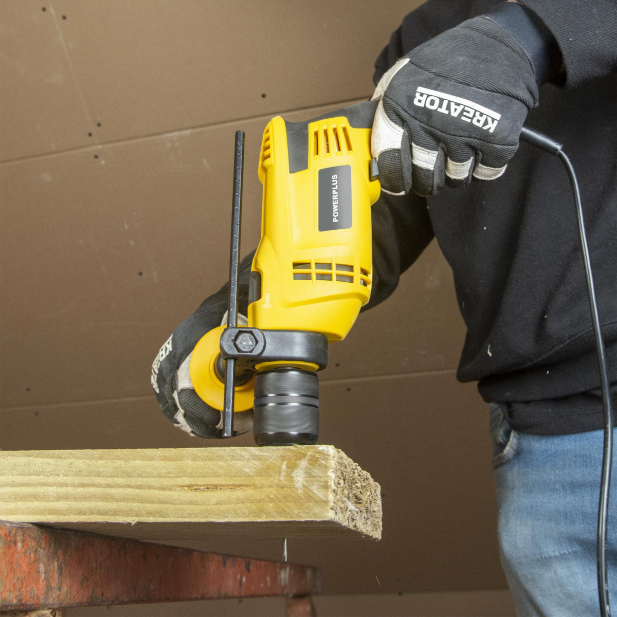 Táto príklepová vŕtačka POWX0271 od Powerplus s výkonom 850 W vám umožní vŕtať do pevných materiálov oveľa rýchlejšie a ľahšie ako pri použití štandardnej vŕtačky. Môžete ju použiť na vŕtanie aj vŕtanie s príklepom. Budete môcť vŕtať do materiálov, ako je oceľ a betón, s frekvenciou úderov 48 000 úderov/min.