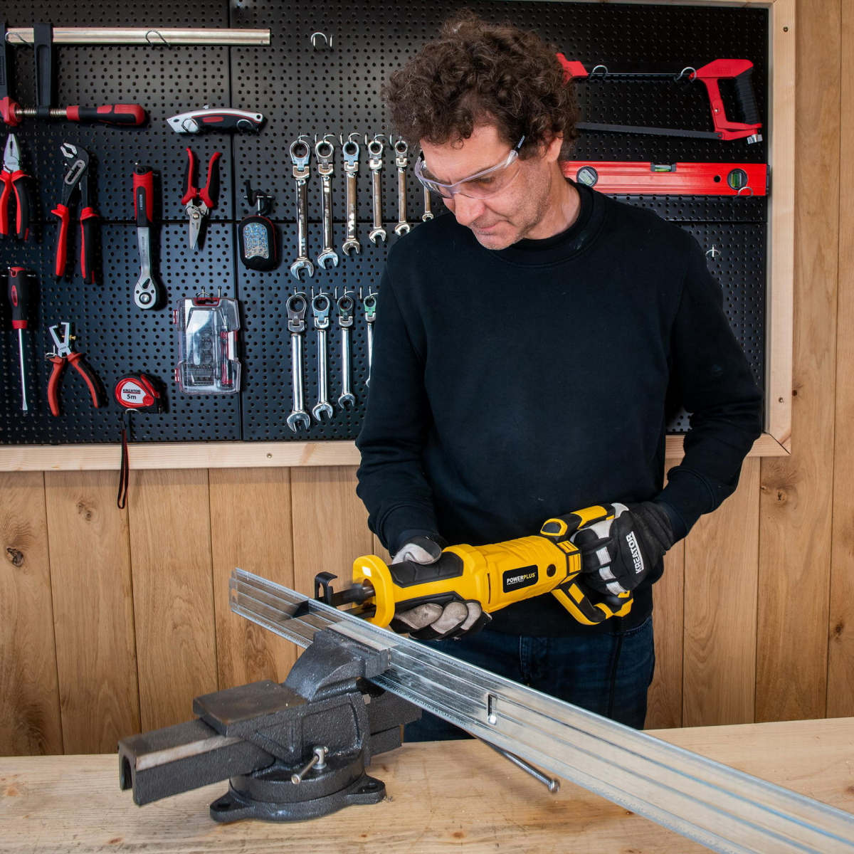 S touto chvostovou pílou POWX03971 od Powerplus sa môžete spoľahnúť na hrubé rezy pílou, prerezávanie a dokonca aj na demolačné práce. V kombinácii so správnym pílovým plátkom dokáže bez námahy prerezať rôzne materiály. Táto výkonná 920W chvostová píla je ideálna pre množstvo vašich projektov, od rezania rúrok po rezanie drevených dosiek. Pri maximálnej rýchlosti otáčania 3000 min-1 môžete rezať až 150 mm do dreva, 100 mm do syntetických materiálov a 10 mm do ocele. Vyberte si rýchlosť otáčania medzi 0 min-1 a 3000 min-1 pomocou elektronickej regulácie rýchlosti a dokonale prispôsobte tento nástroj potrebám vášho projektu. Otočná rukoväť umožňuje pohodlnú prácu bez namáhania zápästia alebo rúk, a to aj pri dlhšej práci. Uhol otočnej pätky môžete jednoducho nastaviť tak, aby efektívne kopíroval tvar vášho obrobku. Stroj je vybavený ochranou proti preťaženiu, zabraňuje prehriatiu a preťaženiu elektromotora. Automaticky vypne motor, keď dôjde k prudkému zvýšeniu teploty. Odľahčenie ťahu kábla s guľovým kĺbom poskytuje optimálnu ochranu kábla bez straty flexibility. Výmena pílových plátkov je rýchla a jednoduchá vďaka systému rýchlej výmeny plátkov. Mäkčený materiál rukoväte poskytuje pohodlný úchop a užívateľský komfort, takže s touto priamočiarou pílou môžete pohodlne pracovať aj dlhšiu dobu. Praktické pracovné svetlo poskytuje vždy jasný výhľad na váš obrobok.