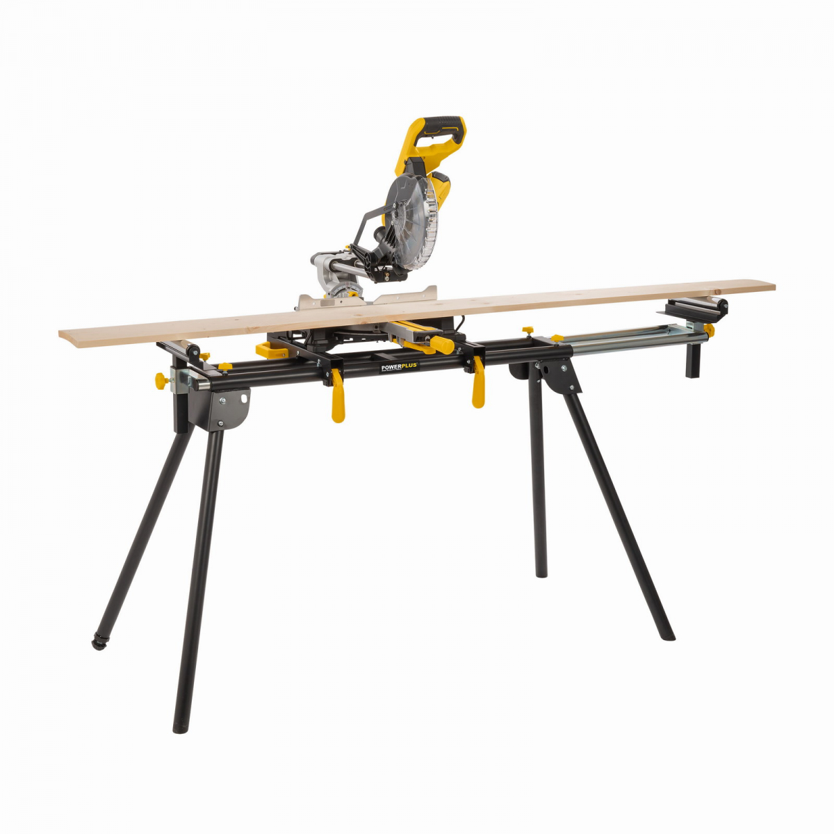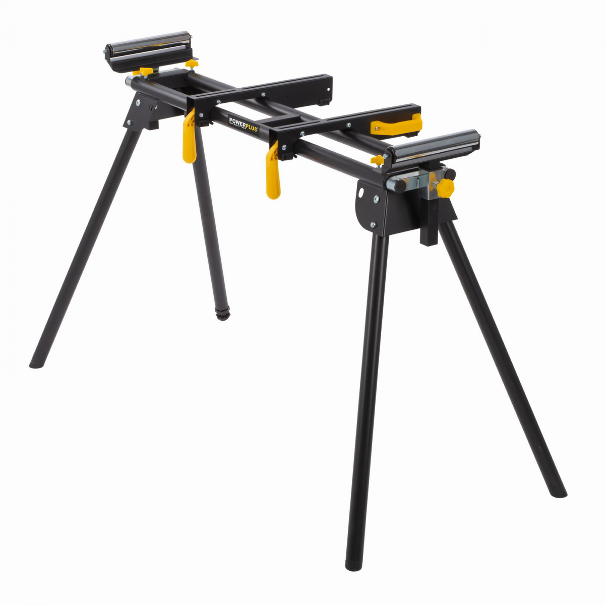 Tento stojan POWX075200 značky Powerplus je vhodný pre všetky pokosové píly Powerplus. Stojan má výšku 100 cm a má na oboch stranách podperu pre dlhé obrobky. To vám umožní ľahko rezať dlhšie dosky na požadovanú veľkosť. Podpery obrobkov sú výškovo a šírkovo nastaviteľné, takže ich možno dokonale prispôsobiť výške stolovej píly a obrobku. Podpery sú tiež vybavené valčekmi. To vám umožní ľahko umiestniť dlhé drevené dosky do správnej polohy. Vďaka nastaviteľnej nohe je možné stojan ľahko postaviť do roviny. Po použití je možné stojan rýchlo a kompaktne zložiť, a preto sa ľahko skladuje. Tento robustný stojan je vhodný na celkové zaťaženie až 150 kg.