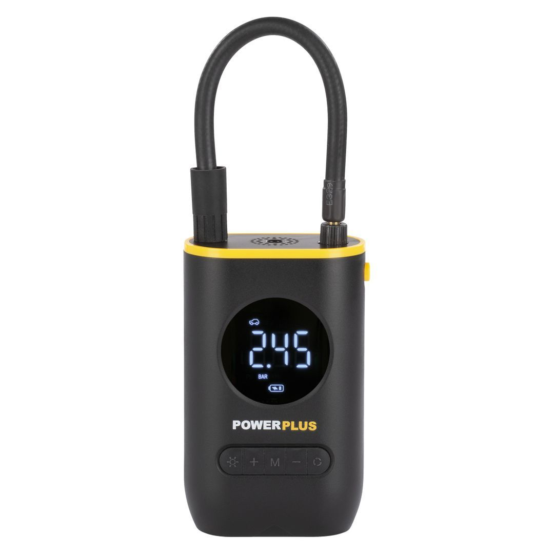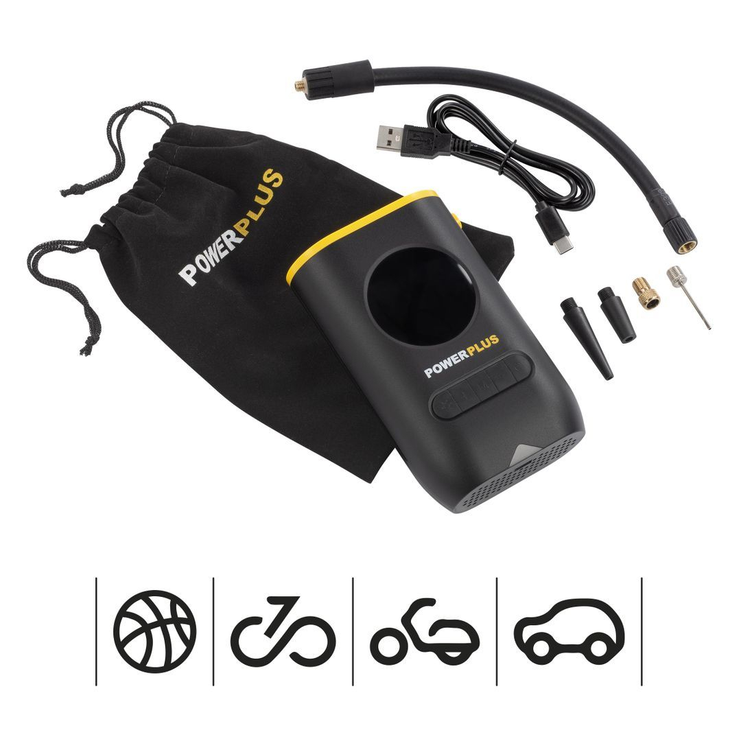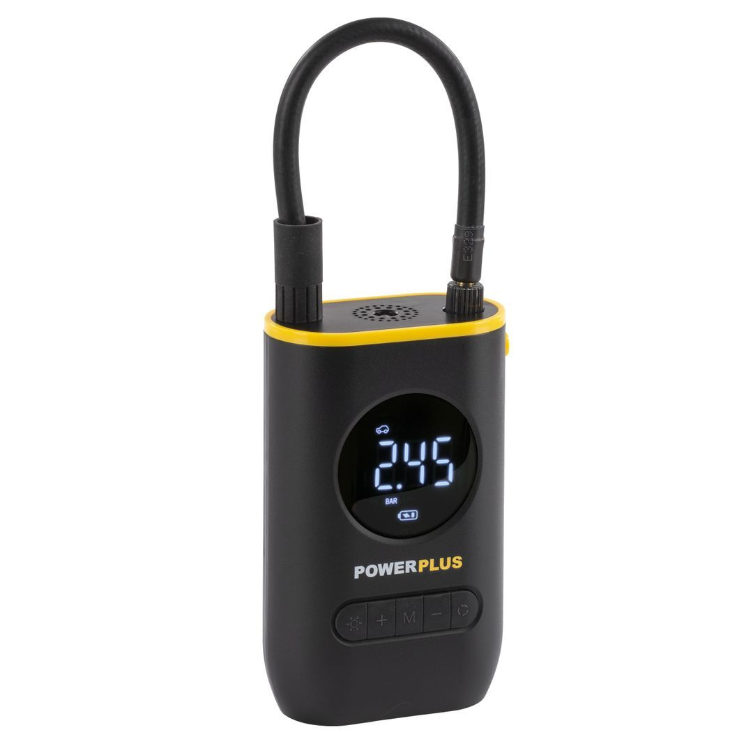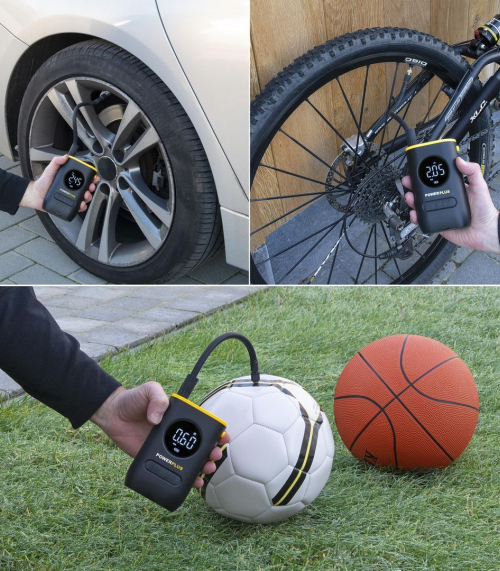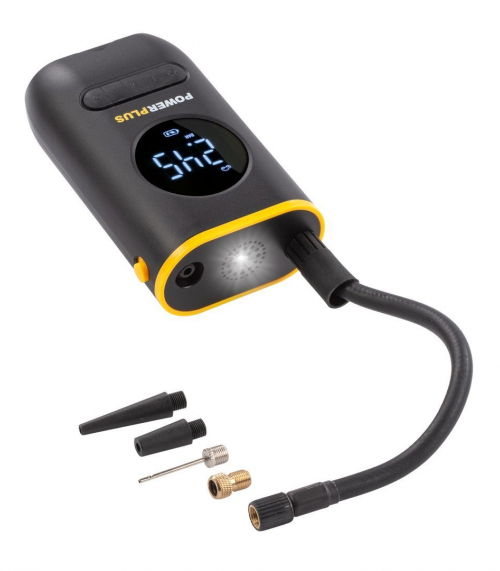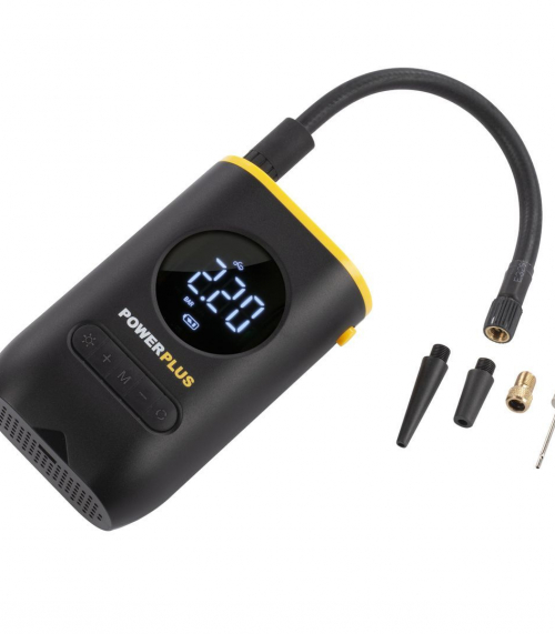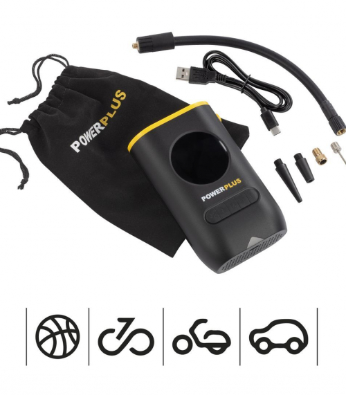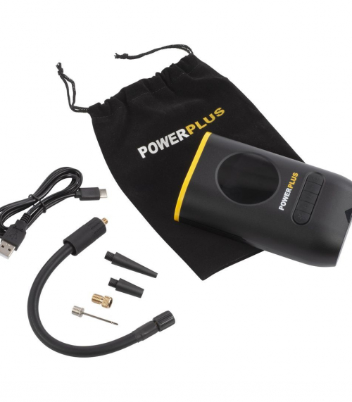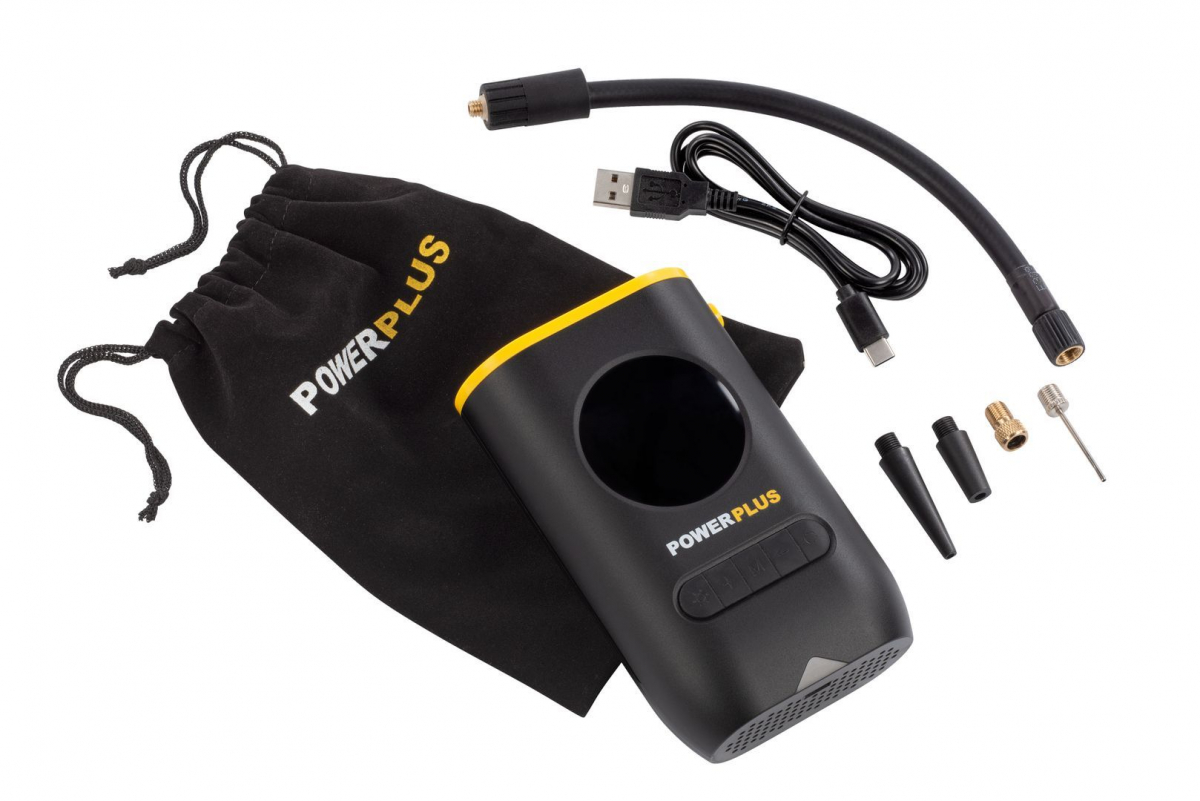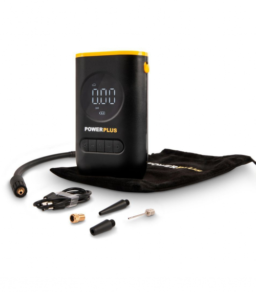 Tento 8V akumulátorový kompresor POWX1710 od PowerPlus produkuje 16 litrov vzduchu za minútu pri maximálnom tlaku 10,3 bar alebo 149 PSI. So svojimi 3 tryskami a adaptérom pre automobilové pneumatiky je táto pumpa perfektná pre rýchle dofukovanie napríklad lopty, pneumatík na bicykli alebo auta či nafukovací matrac. Po použití ho jednoducho uložíte do praktického puzdra. Kompresor sa nielen ľahko používa, ale je aj kompaktný, ľahký a bezdrôtový. Môžete si ho teda ľahko vziať kamkoľvek, napríklad v taške na bicykel. Hadica meria na dĺžku 32,5 cm a má vnútorný priemer 7 mm, čo poskytuje dokonalú rovnováhu medzi flexibilitou a minimálnou stratou tlaku. Vďaka LED svetlu sa môžete pustiť do práce aj v zle osvetlených priestoroch. Zariadenie ukazuje zostávajúcu energiu batérie, takže viete, kedy pumpu dobiť pomocou priloženého nabíjacieho kábla. Plne nabitá batéria s kapacitou 2.000 mAh poskytuje 20 až 25 minút pracovného času.