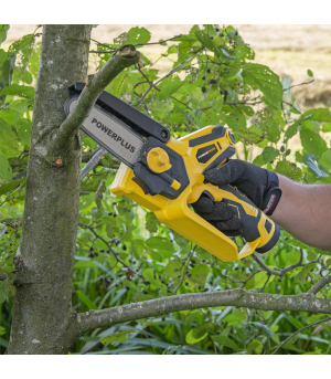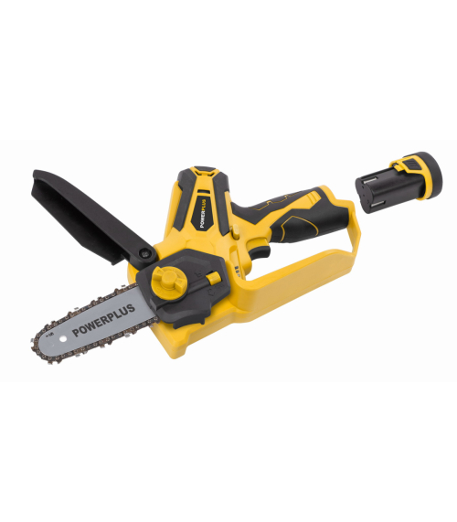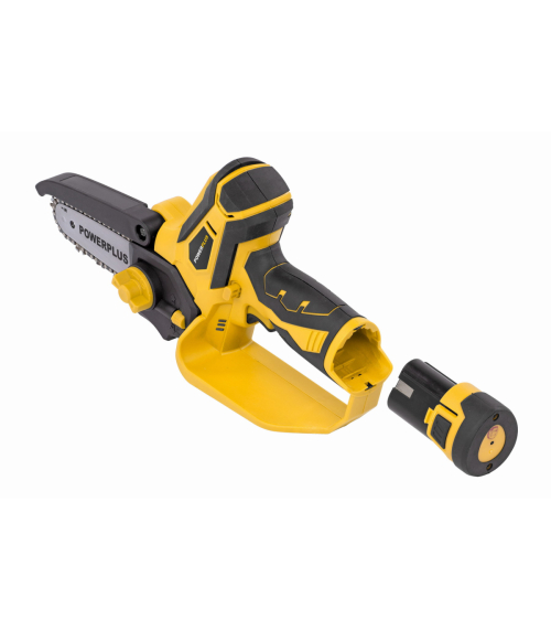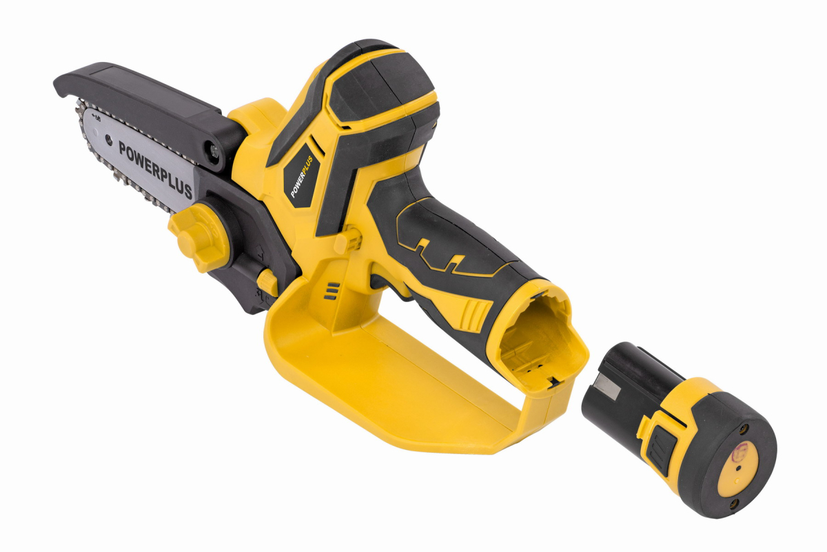 Vďaka kompaktnému dizajnu môžete túto prerezávaciu Aku 12V pílu POWXG1045 od PowerPlus ovládať iba jednou rukou. Nielen, že to urýchľuje prácu, ale taktiež poskytuje potrebný pracovný komfort a voľnosť pohybu. Žiadne káble, ktoré prekážajú alebo sa nechtiac prerezávajú, taktiež žiadne nepríjemné pachy a minimálny hluk. Ľahko manévrujte so strojom v úzkych, ťažko prístupných oblastiach, napr. medzi vetvami alebo kríkmi. Aby bola zaručená vaša bezpečnosť, je stroj vybavený dvojitou ochranou proti spätnému rázu a bezpečnostným krytom. Navyše nestrácate čas nastavovaním napnutia reťaze, pretože to môžete vykonať bez náradia vďaka systému napínania reťaze typu SDS. Pre väčší užívateľský komfort má píla aj mäkčenú rukoväť. Lišta prémiovej kvality je dlhá 100 mm a je opatrená pevnou reťazou so 14 zubami. Pri rýchlosti rezania 6,7 m/s môžete bez námahy prerezať všetky druhy dreva. Ideálne na prerezávanie malých vetiev a iné jemné rezanie. Píla je dodávaná s jednou 12V batériou a nabíjačkou. V neposlednom rade je súčasťou píly aj ochranný kryt reťaze a lišty a taktiež prázdna 20ml fľaštička na olej.